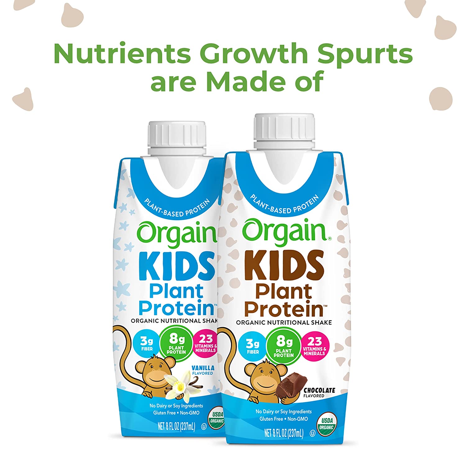 Orgain Organic Kids Vegan Protein Nutritional Shakes, Chocolate - 8g of Protein, Contains Fiber and 23 Vitamins and Minerals, Plant Based, No Gluten or Soy, Non-GMO, 8 Fl Oz (Pack of 12)