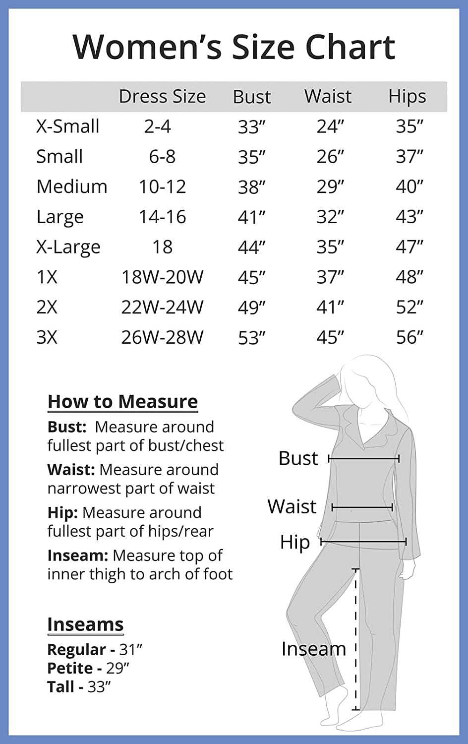 Find the Perfect Size - Our pajamas for women have been designed by sleepwear experts to fit a range of bodies; below you will find a size chart to help you find your perfect fit.