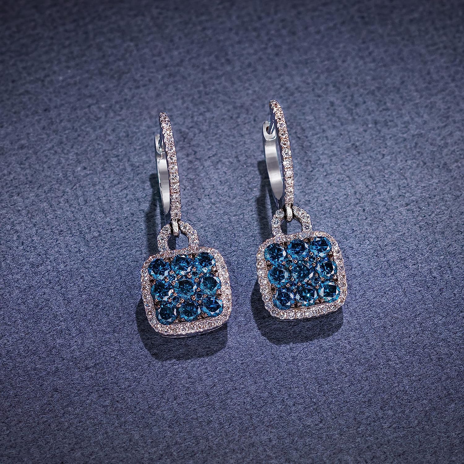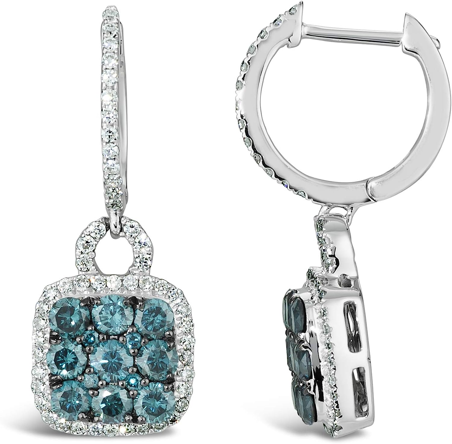 1 1/4 Carat White and Blue Diamond Dangle Drop Earrings for Women in 14k White Gold (H-I, VS2-SI1, cttw) Square Huggie Earrings by LeVian