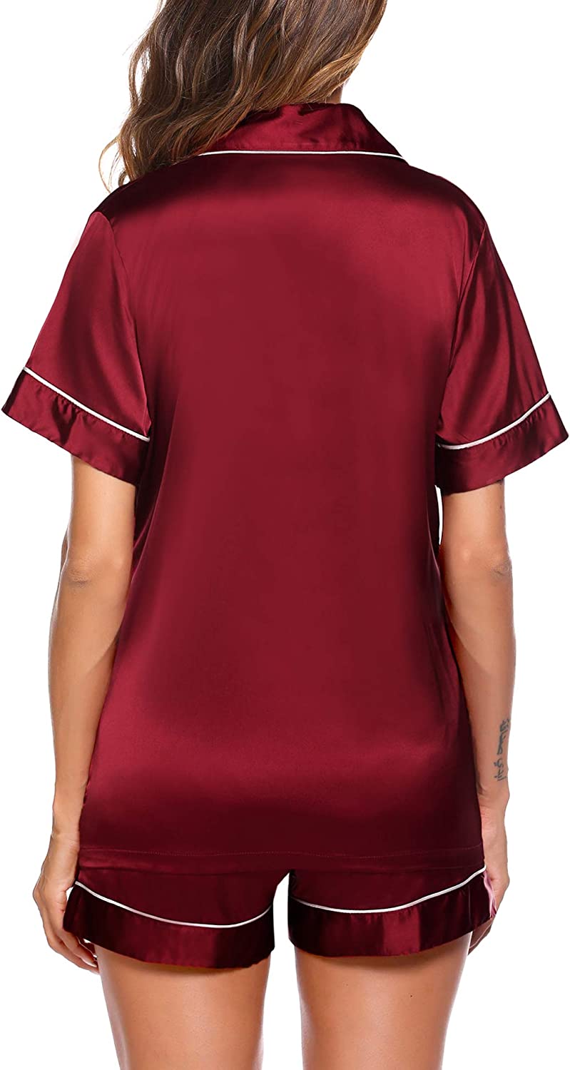 Pajama Top:Short sleeve sleepwear with notch collar,button front pajamas shirt and one chest pocket design.Lightweight and Skin-friendly silk pajamas for women.Great for sleeping,casual wear or lounging around the house or yard all day