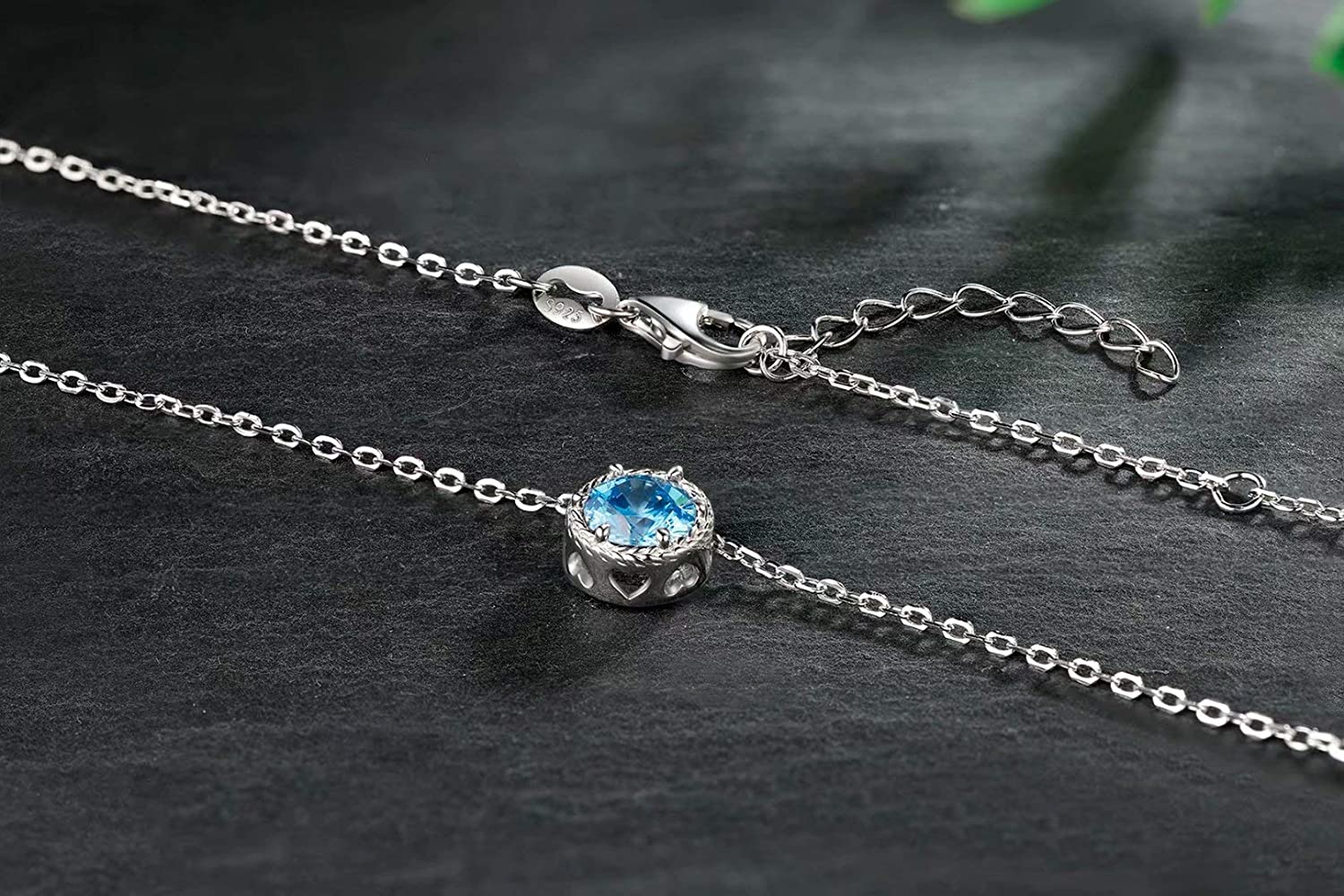 Presentski Birthstone Necklace for Women Sterling Silver 925 Solitaire Pendant Dainty Necklace Birthday Gifts for Women Girls Birthstone Necklaces for Mom