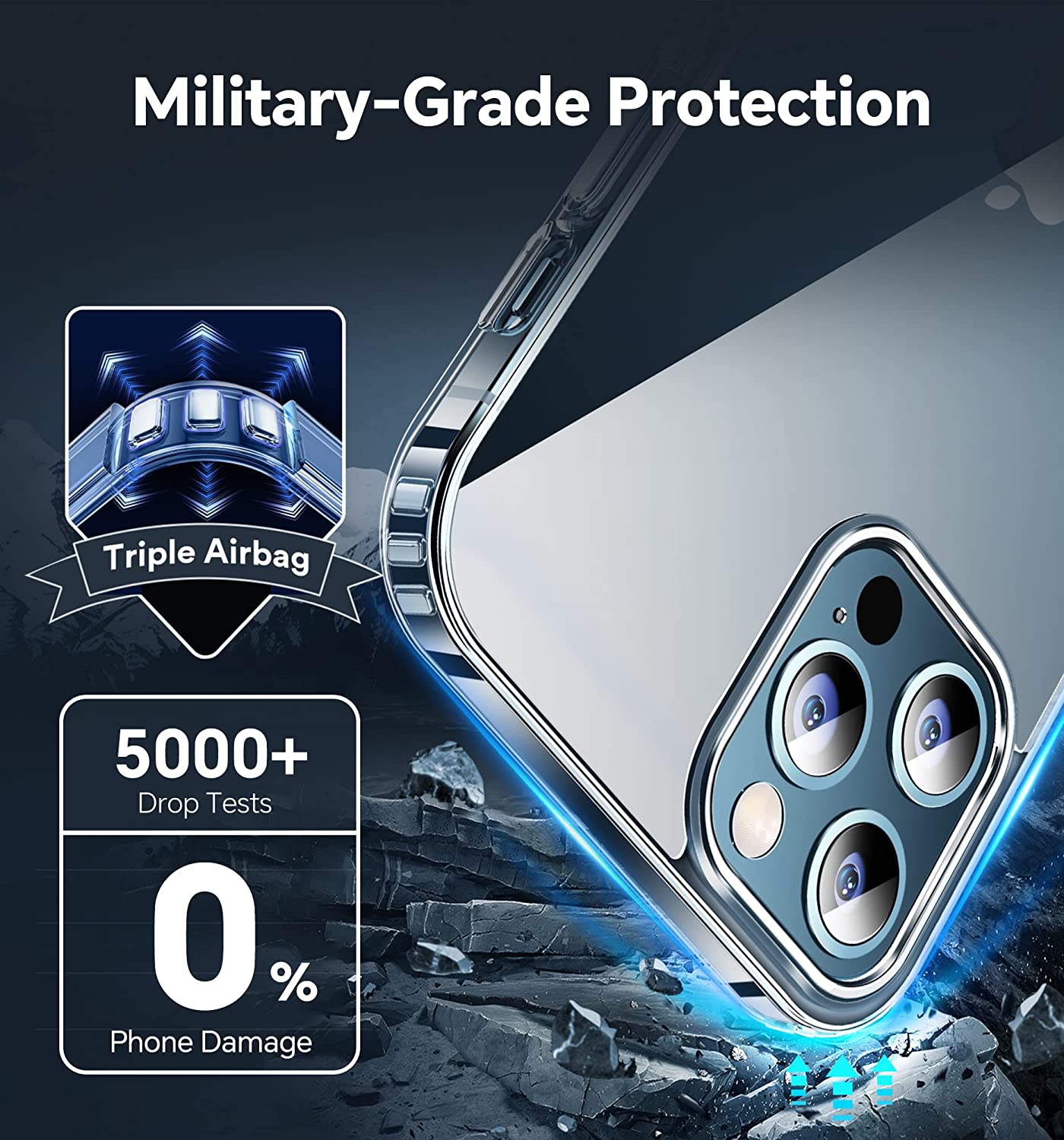 - Military Grade Shockproof Protection: Our case is equipped with 12 built-in airbags at the four corners, which can effectively cushion the phone in the event of a drop or impact. The back plate adopts a composite sheet of rigid polycarbonate and polymethyl methacrylate combination to ensure transparency and hardness while improving crack resistance. The anti-fall capability reaches the U.S. military-grade standard.