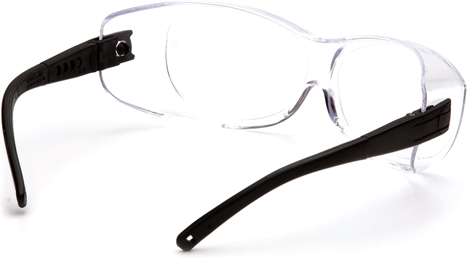 The Pyramex OTS (Over the Spectacle) safety glass is designed to fit over today's prescription eyewearThe OTS over glasses safety glasses offers single lens protection that encapsulates the eye for superb protectionThe lightweight nylon temples adjust for length and pitch for adjustingLenses are coated for superior scratch resistanceLenses provide 99% protection against harmful UV rays.