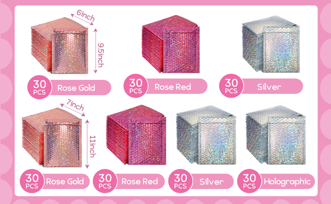 Amount of package: you will get 30 piecesholographic bubble mailers (11 x 7 inches), such large quantity to meet your various needs, you can also share them with your friends and family