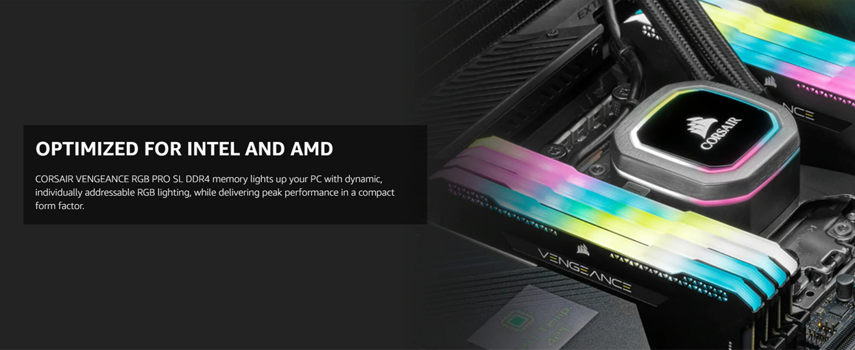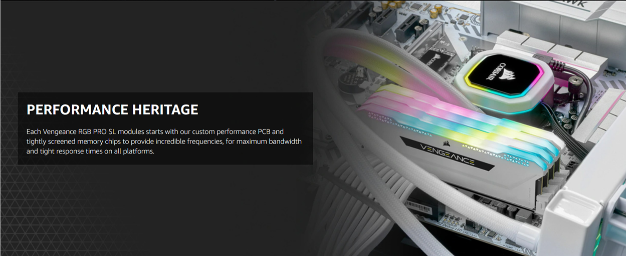 • A custom performance PCB provides the highest signal quality for the greatest level of performance and stability..VENGEANCE RGB PRO SL modules use only tightly screened memory chips, for extended overclocking potential..Take control with CORSAIR iCUE software and synchronize lighting with other CORSAIR RGB products, including coolers, keyboards and fans..