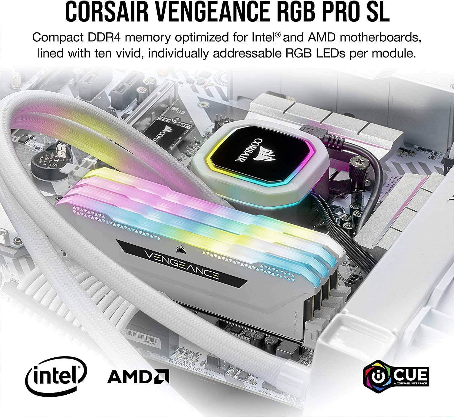 Corsair Vengeance RGB Pro SL 32GB (4x8GB) DDR4 3200 (PC4-25600) C16 1.35V - White (CMH32GX4M4E3200C16W)