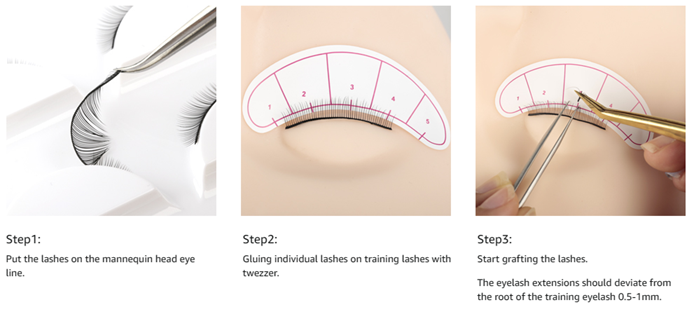 - [SELF-ADHESIVE] There is glue on the band of training lash strips, which can be adhere directly on the lash extension practice head, no additional glue required.
