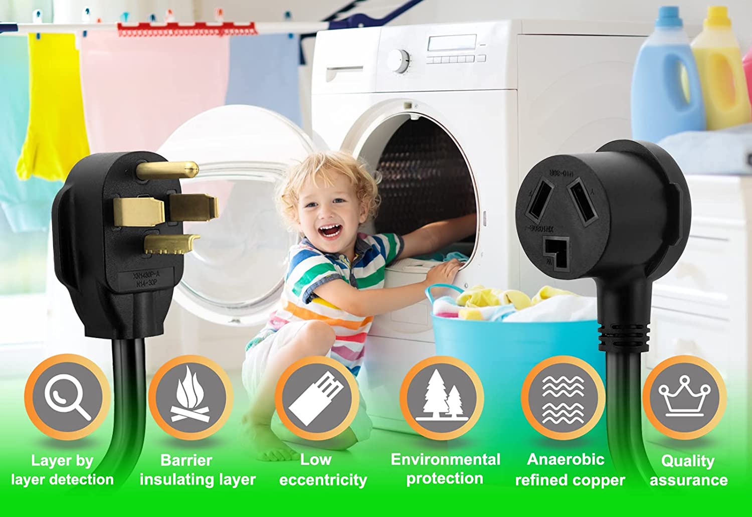 - 【High quality】Buy a new Dryer? Hire an Electrician? You neither have to hire electrician to take your dryer apart to get the cord rewired, nor have you to buy a new electric clothes dryer. you have to do is plug it in, perfectly simple.10AWG dryer power cord made of copper with UL approved for PVC wire in UL 62 standard Support Max 30 Amp.