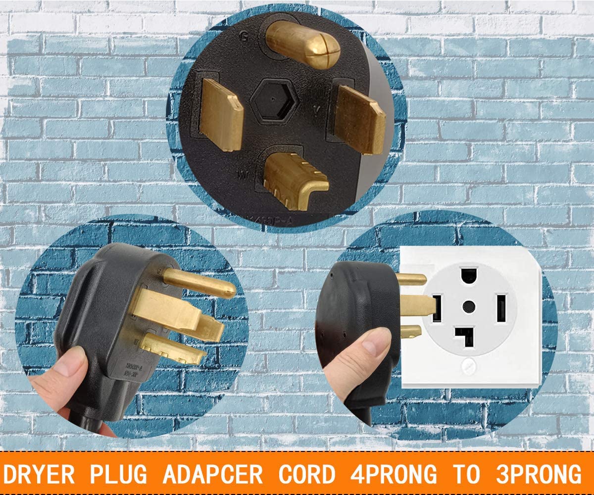 - 【Heavy Duty Configuration】Dryer plug adapter 3 to 4 prong outlet Use 100%copper core wire cable, fully coated with durable and insulated PVC jacket, heat-resistant, effectively avoid surface oxidation.