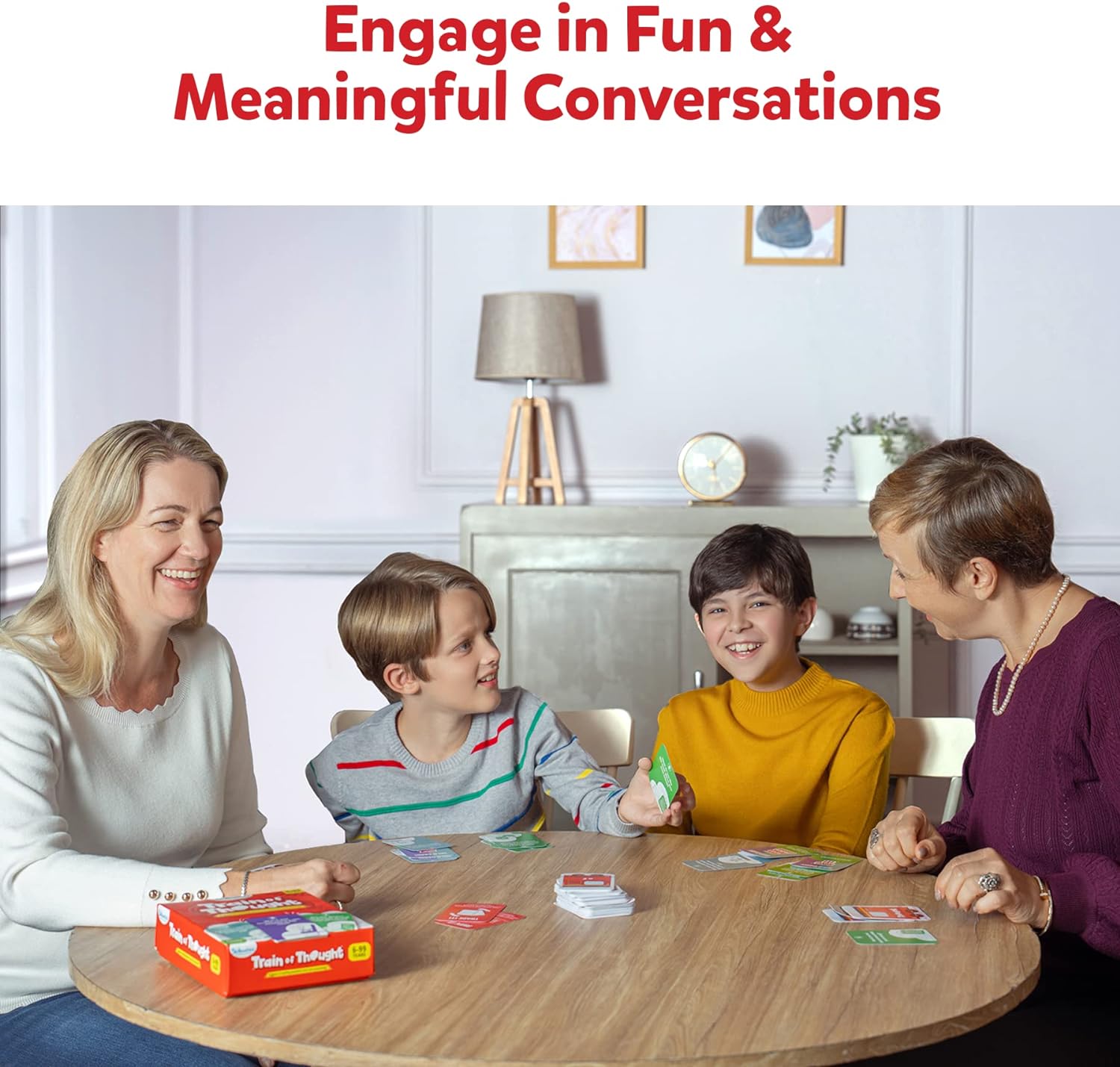 TRAIN OF THOUGHT CARD GAME - Train of thought is the perfect parental tool to approach playtime and family time. This highly engaging, age-appropriate game of exciting questions & fun challenges can be enjoyed by all ages.