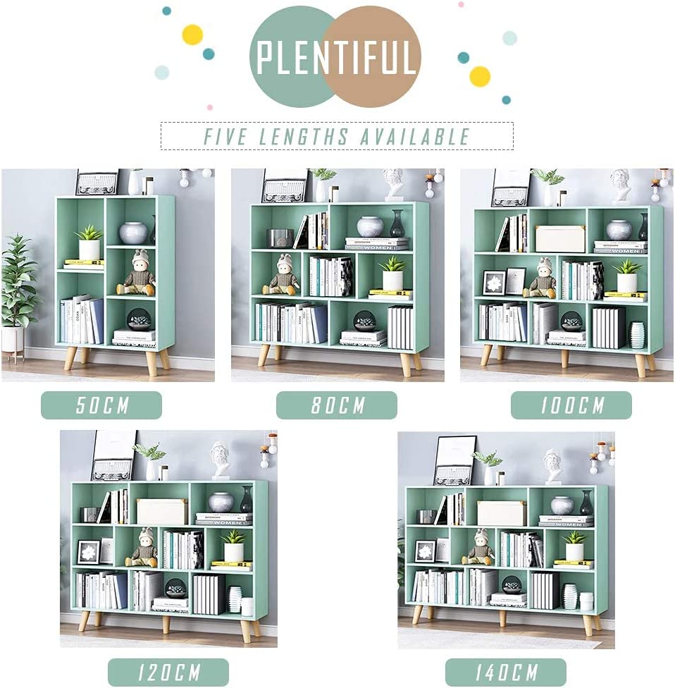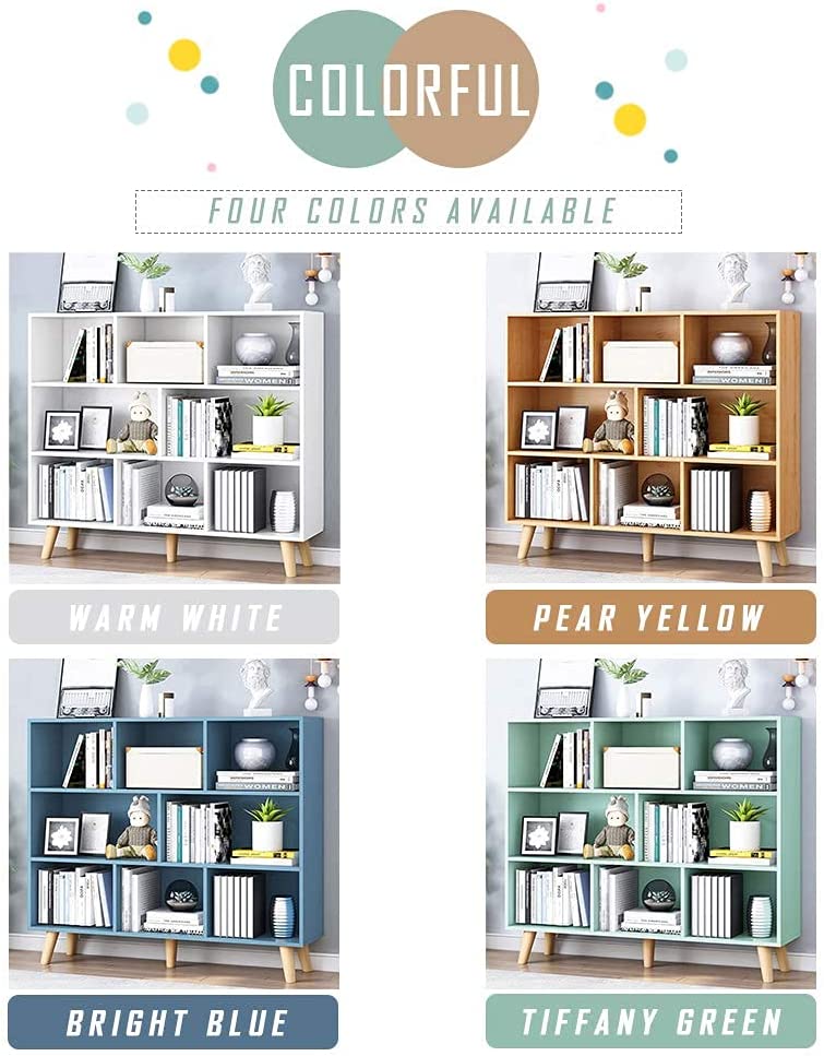 IOTXY Wooden Open Shelf Bookcase - 3-Tier Floor Standing Display Cabinet Rack with Legs, 8 Cubes Bookshelf, Tiffany-Green