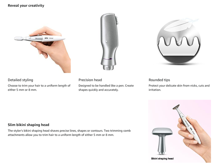Shape your bikini zone: the slim bikini shaping head is designed for shaving precise lines, shapes or contours.