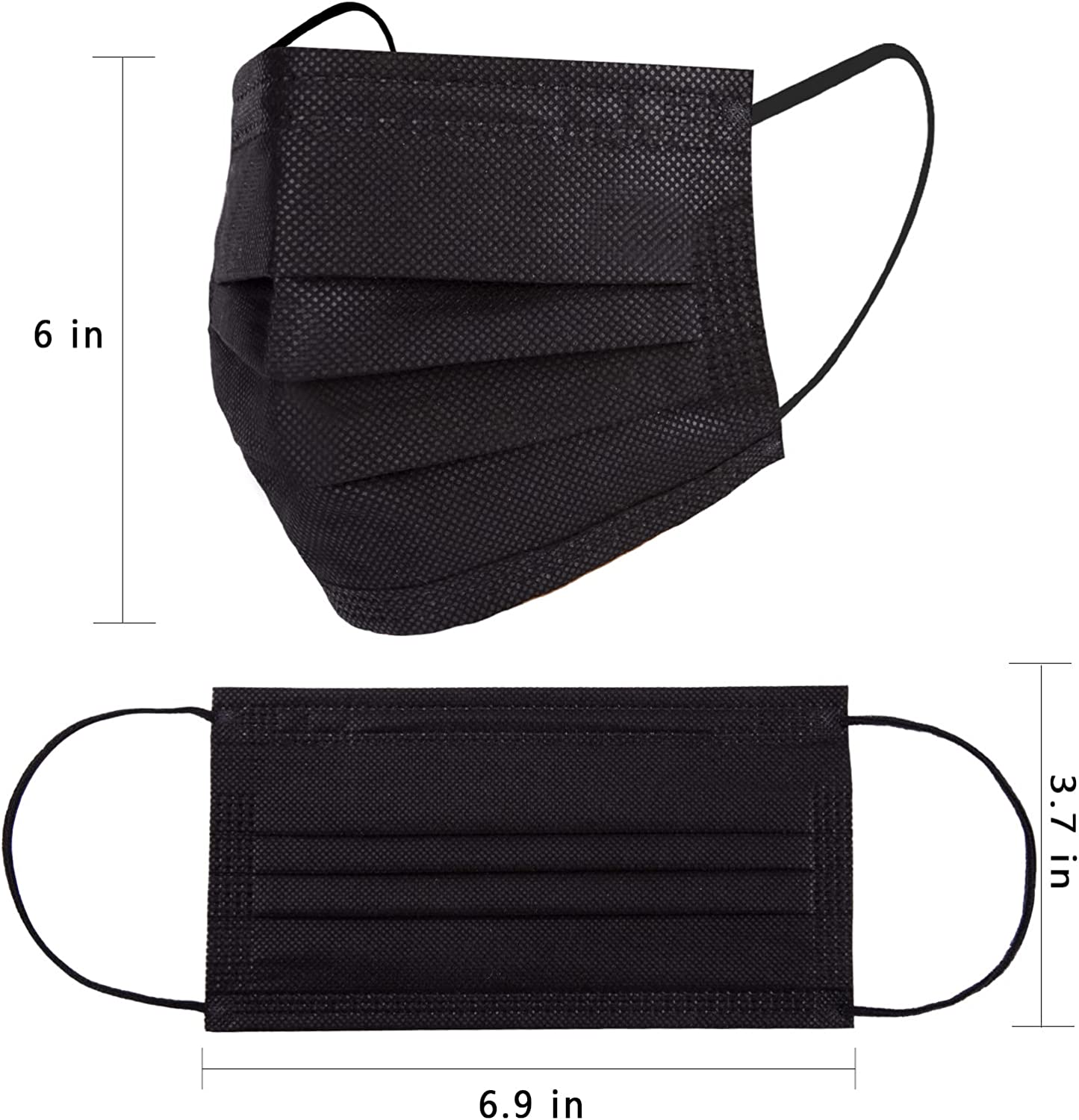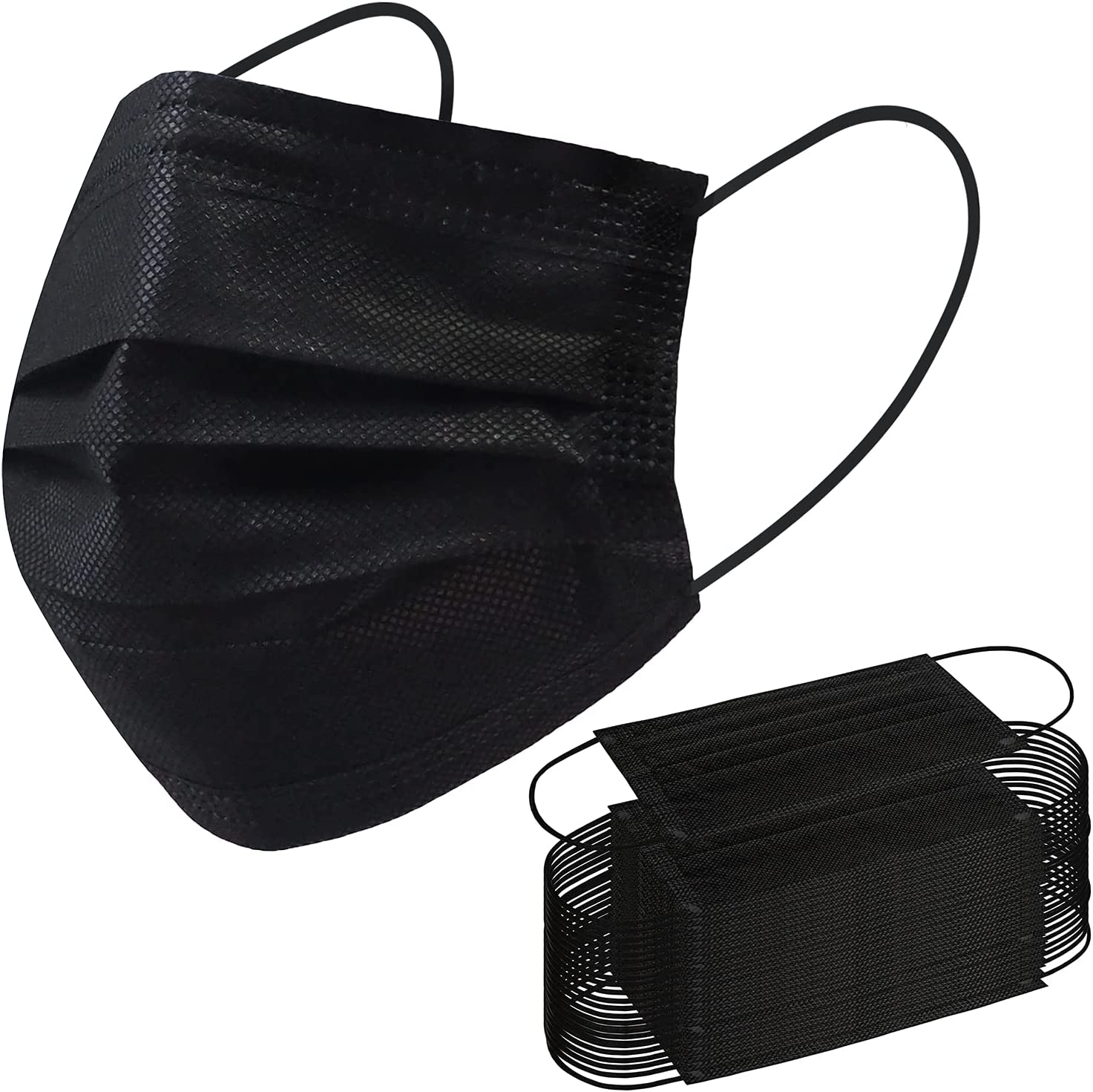 Disposable Face Mask, 100 PCS Black Masks, 3 Ply Protection Face Masks