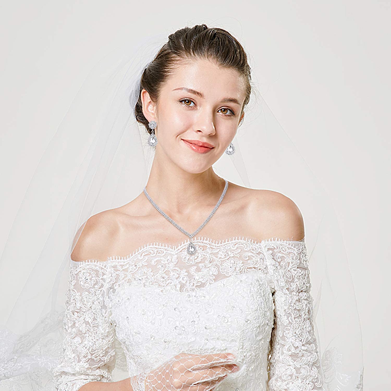 • ❤Skin-friendly Material -- The crystal wedding jewelry set are made of the skin-friendly material, lightweight and comfortable to wear. The teadrop shape pandent, shiny crystal and classic elegent styles make you more mysterious and eye-matching, they will give you confidence, show your charm and attract more attention, get you more compliments.