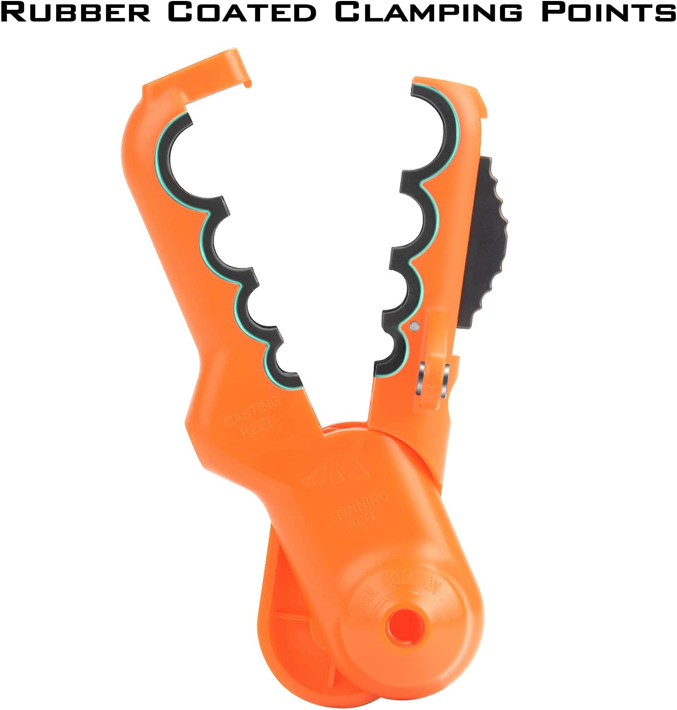 - PATENT PENDING LIINE SPOOLING TOOL– The innovative KastKing patent pending line spooler design is simple to use and can spool both spinning reels and baitcasting reels without any line twist. Rubber coated clamp points firmly grip nearly any size rod without damaging your fishing rod and tension bands can be adjusted to apply the ideal line tension during the spooling process. Made with non-rusting ABS materials.
