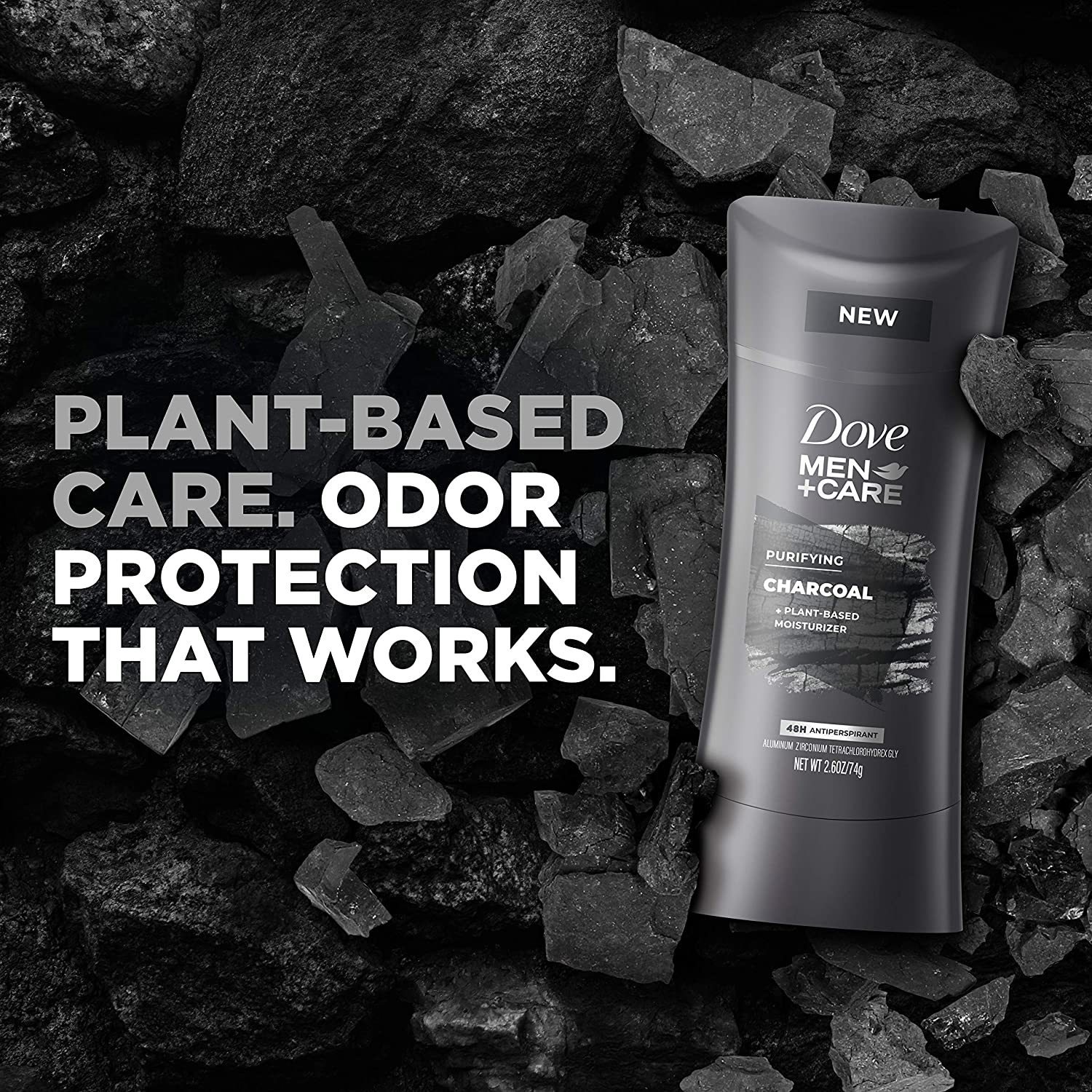 A natural inspired deodorant with 48-hour protection against sweat and odor, and lasting freshness - that's the Dove Men+Care antiperspirant with Charcoal. For men who want protection that works through busy, active days, this antiperspirant deodorant for men is made to leave you feeling purified and dry for a full 48 hours. This antiperspirant is one of the strongest defenses against sweat and odor, with natural essential oil extracts, plant-based moisturizers and the purifying feeling of Charcoal. This deodorant offers long-lasting performance and comfort because it's tough on sweat, but not on the skin. Swipe with ease to experience a smooth glide and keep your underarms feeling clean for the long-lasting protection that you need. You can also rest assured that Dove's global commitment to sustainability means this deodorant is cruelty-free, with no testing done on animals. To complete your grooming routine, explore the entire Dove Men+Care Plant-Based Care range. Whether it's the Dove Men + Care Charcoal Clove Body Wash or the Dove Men + Care Eucalyptus+ Birch, there are many options to pair this deodorant with. You can also choose from Dove Men + Care 0% Aluminum deodorant sticks and sprays available in invigorating scents like Lime + Sage and soothing ones like Sandalwood + Orange.Un desodorante de inspiración natural con protección de 48 horas contra el sudor y el olor, y frescura duradera, es el antitranspirante Dove Men+Care con carbón vegetal. Para los hombres que quieren una protección que funcione durante días ocupados y activos, este desodorante antitranspirante para hombres está hecho para dejarte purificado y seco durante 48 horas. Este antitranspirante es una de las defensas más fuertes contra el sudor y el olor, con extractos naturales de aceites esenciales, humectantes a base de plantas y la sensación purificadora de carbón. Este desodorante ofrece un rendimiento duradero y comodidad porque es resistente al sudor, pero no a la piel. Desliza con facilidad para experimentar un deslizamiento suave y mantener las axilas con una sensación limpia para la protección duradera que necesitas. También puede estar seguro de que el compromiso global de Dove con la sostenibilidad significa que este desodorante está libre de crueldad, sin pruebas realizadas en animales. Para completar su rutina de aseo de limpieza, explore toda la gama Dove Men+Care Plant-Based Care. Ya sea el lavado corporal Dove Men + Care Charcoal Clove o el Dove Men + Care Eucalyptus+ Birch, hay muchas opciones para combinar este desodorante. También puedes elegir entre palillos desodorantes y aerosoles Dove Men + Care 0% aluminio disponibles en aromas estimulantes como lima + salvia y calmantes como sándalo + naranja.