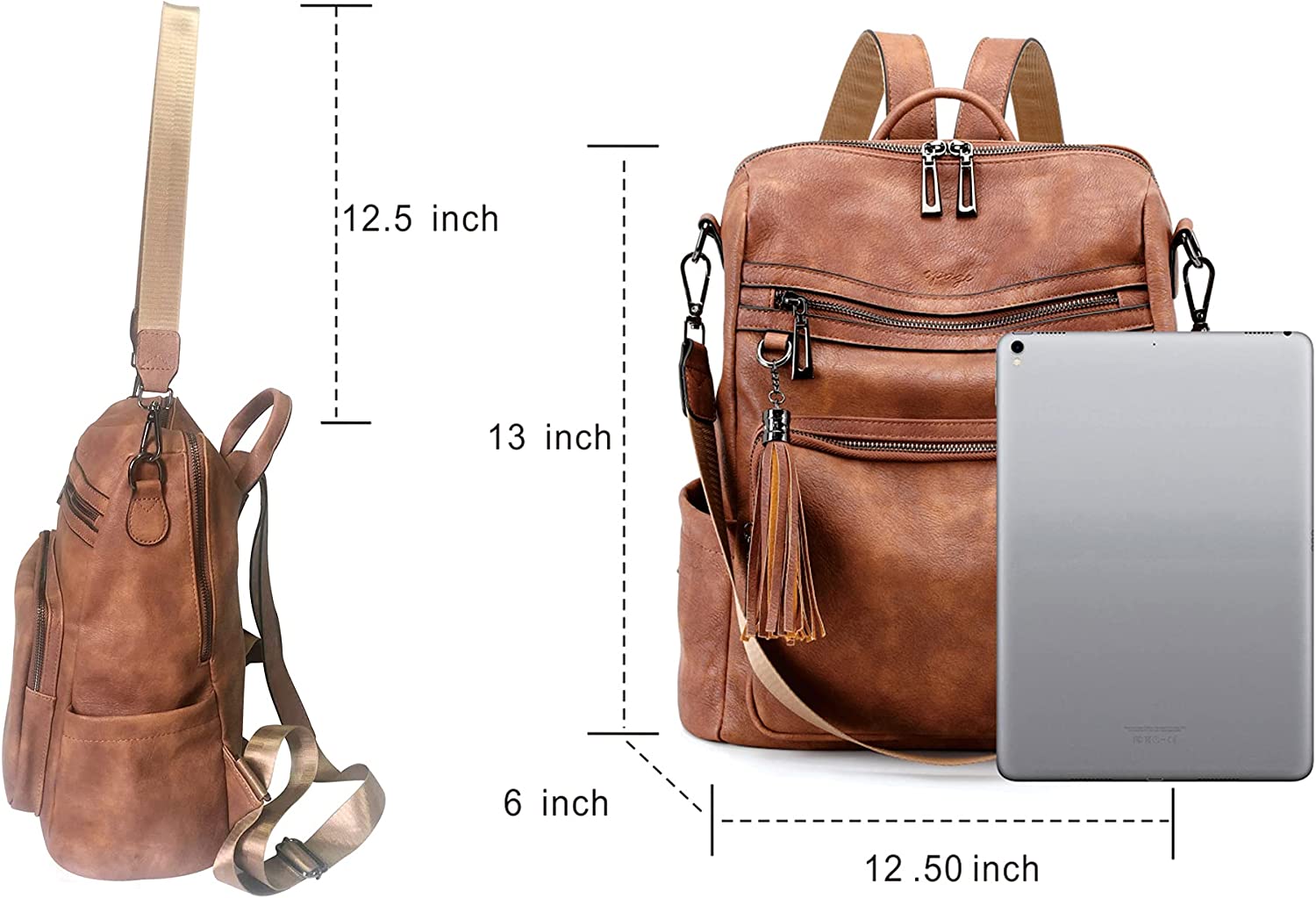 • 【HIGH-QUALITY MATERIAL】 This backpack purse for women is made of high-quality water-resistant, anti-scratch and tear-resistant soft PU leather, metal accessories, canvas long shoulder strap and fabric lining, and there is a cute tassel next to the front zipper pocket, all of these are fashionable and durable.