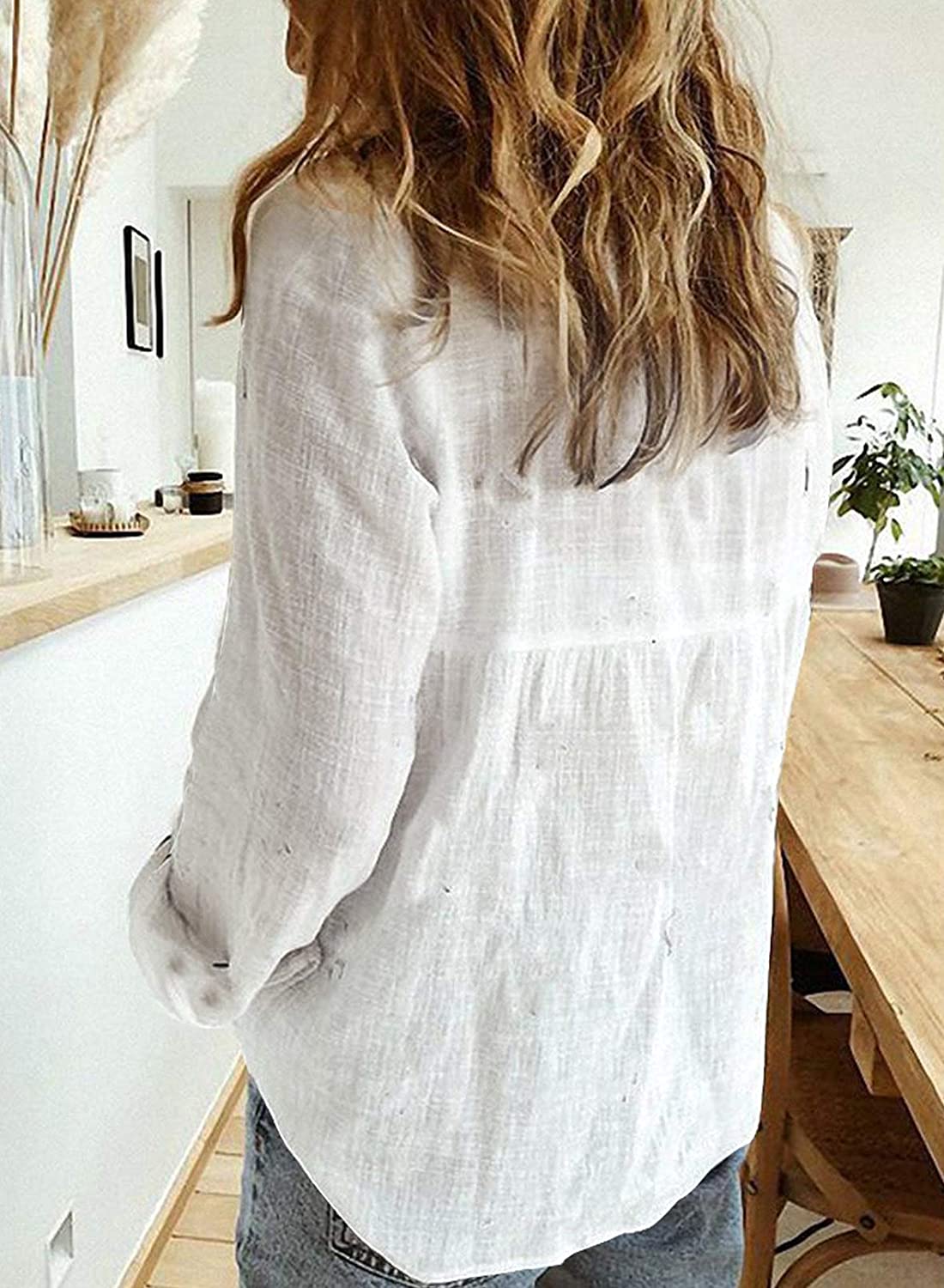 Hotouch Women Button Down Shirts Office Drop Shoulder Oversized Blouse Long Sleeve Boyfriend Dress Shirt with Pockets