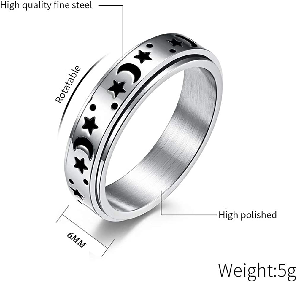 Perfect gift: This moon star spinner ring is suitable for giving to friends, family, boys, girls, boyfriends and girlfriends. If you have an anxious friend around you, this titanium stainless steel anxiety rings is the perfect gift to help them release their stress.