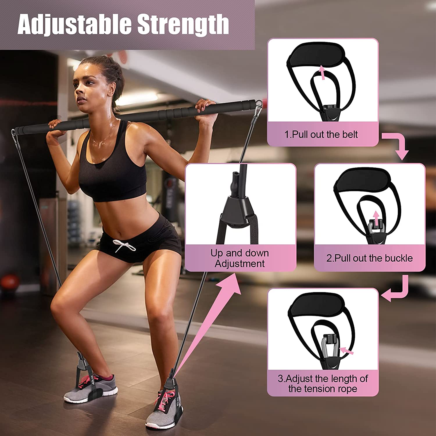 ✅ 『Upgraded high-quality』Our Pilates bar kit includes a Φ1.0-inch high-quality steel rod, wrapped in soft foam, to provide you with a more comfortable holding experience. It also features widening, non-slip foot belts and thick adjustable latex resistance bands for lasting durability; the strong 360° rotating metal lifting lugs & high-strength alloy buckle are not easy to break, allowing you to easily replace the latex resistance bands and prevent the bands from tangling.