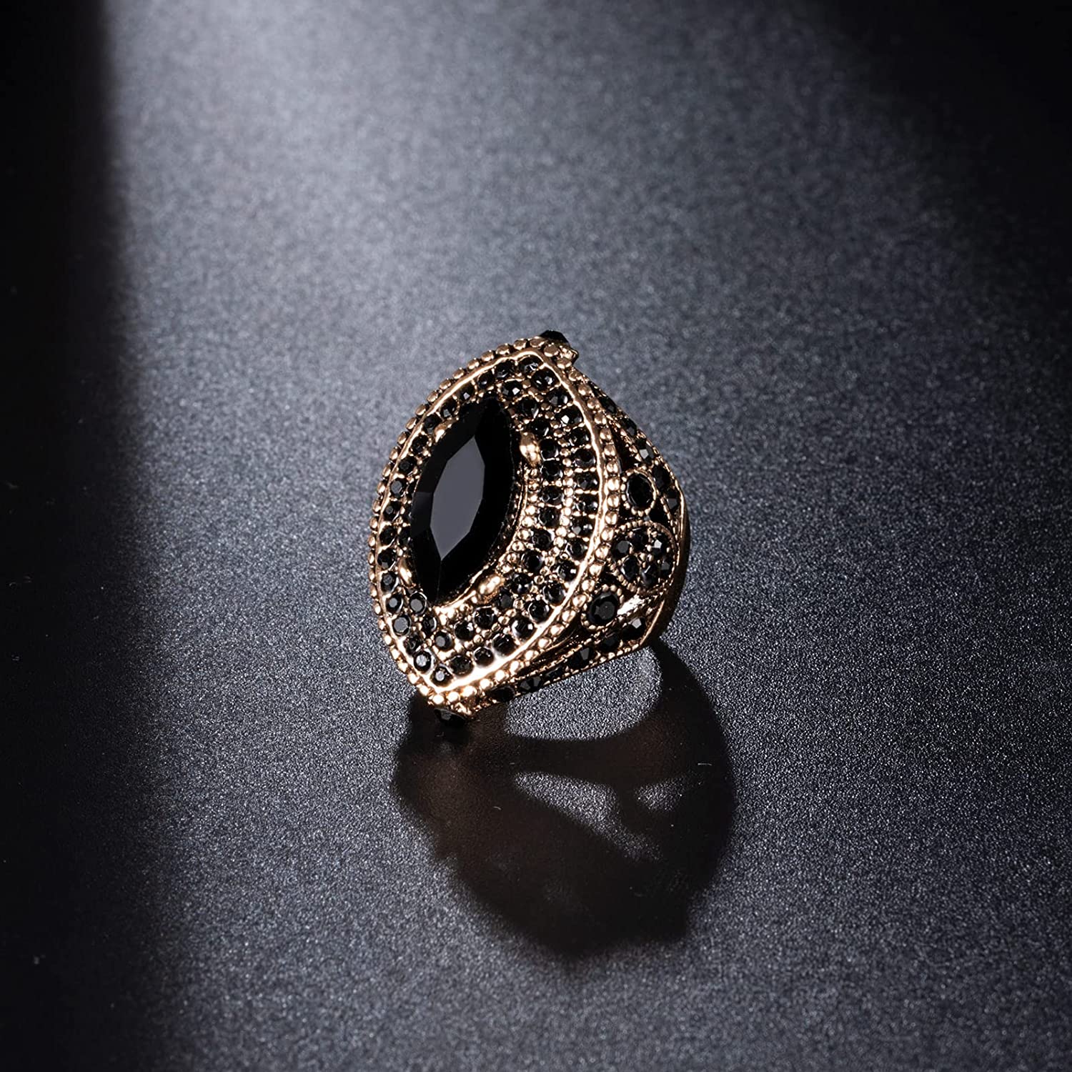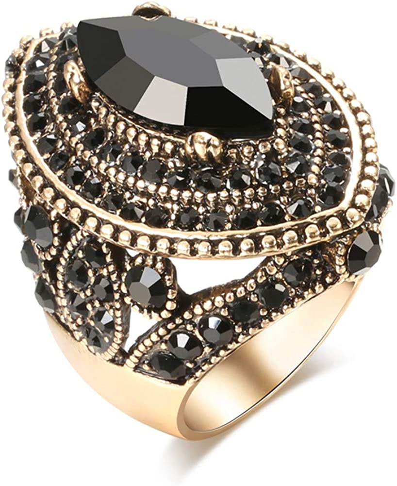 CKHAO Women Ring - 32mm Big Size Antique Gold Plated Turkish Style Black Gemstone Vintage Ring Women Jewelry J0769BLK