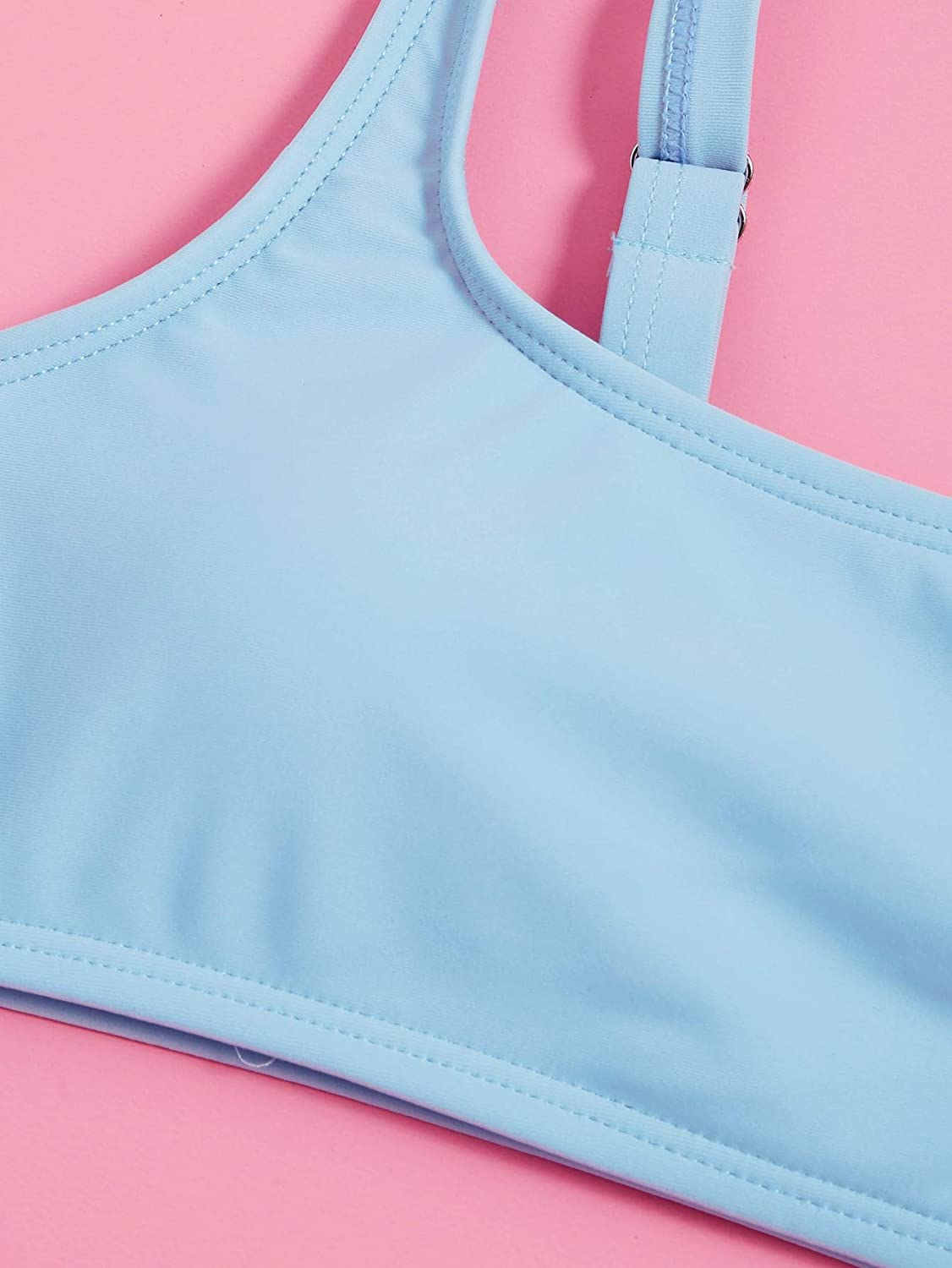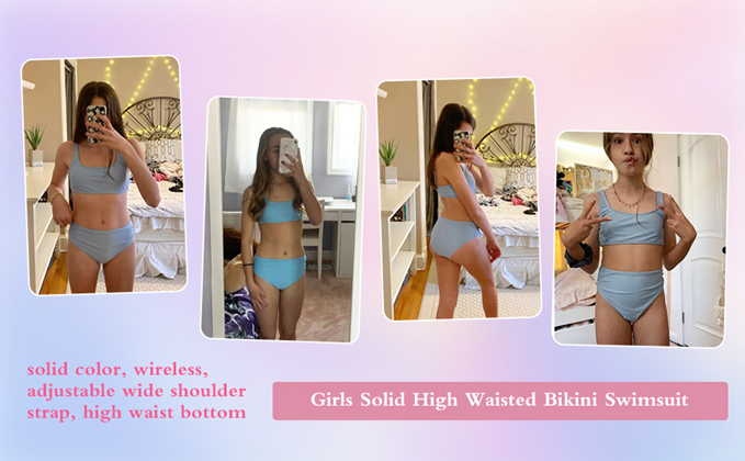 Romwe Girl's 2 Piece Swimsuit Sport Solid High Waist Bikini Set Bathing Suit