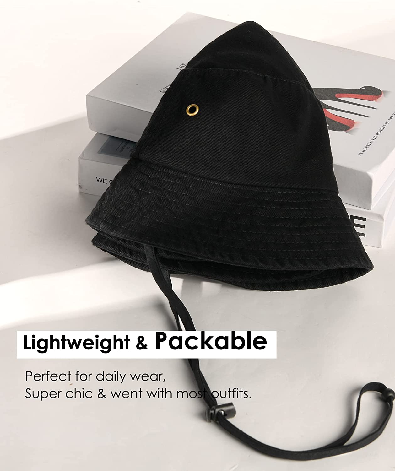 FURTALK Bucket Hats for Women Washed Cotton Packable Summer Beach Sun Hats Mens Womens Bucket Hat with Strings for Travel
