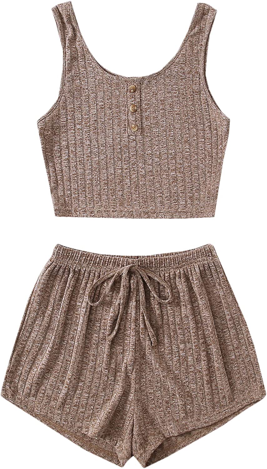 SOLY HUX Women's Button Front Ribbed Knit Tank Top and Shorts Pajama Set Sleepwear