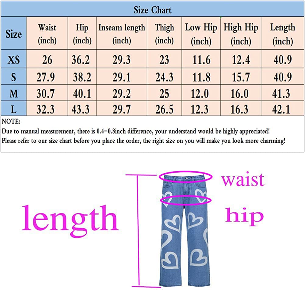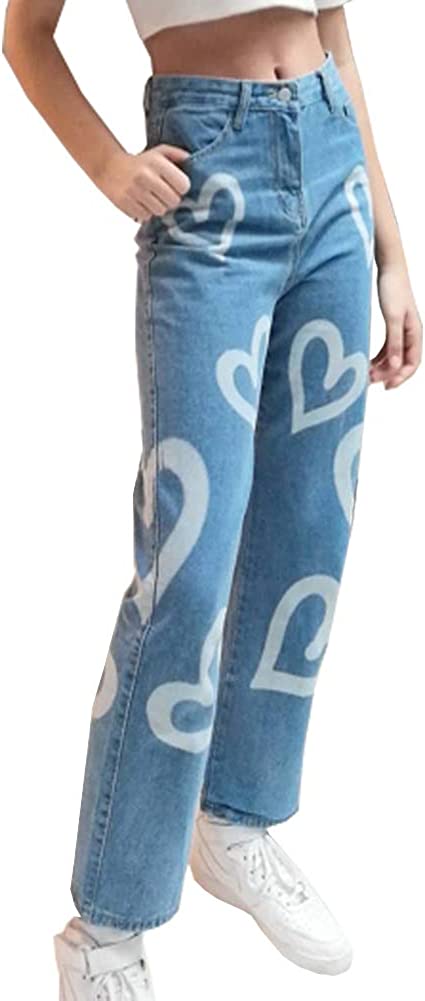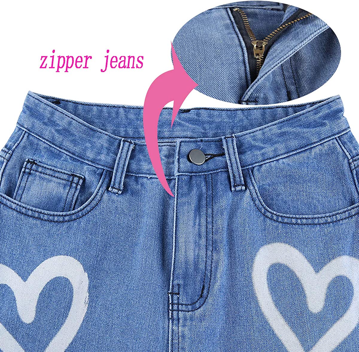 • Package: 1 piece heart print straight leg jeans. Hand or machine wash