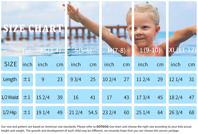 Sizes for 3-12 years old girls. Our size and pattern are based on American size standards. Please refer to DOTDOG size chart and choose the right size base on your kids’ actual height and weight. Kids of the same age may be of different height and weight. We sincerely hope that you can choose the correct yardage.