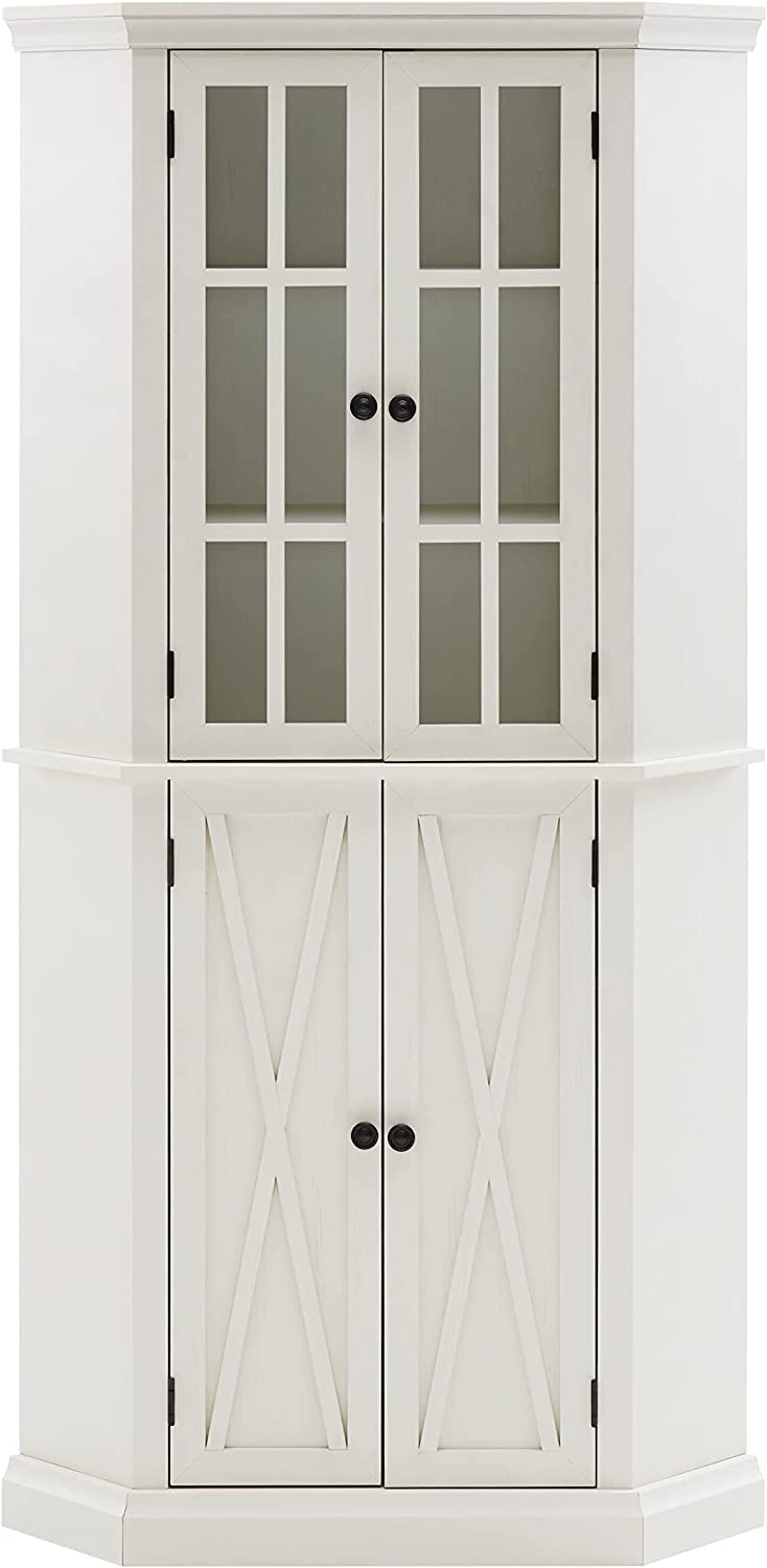 Merax Bathroom Cabinet Freestanding Storage Furniture with Adjustable Shelves and Doors for Kitchen, Living Room, Hall, Modern Style, White Triangle