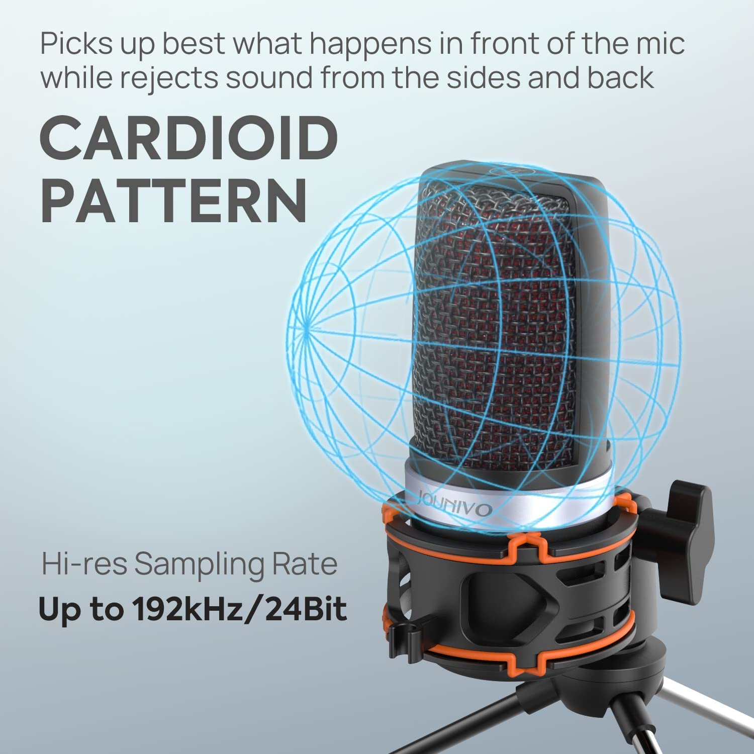 JOUNIVO USB Microphone for Computer, Condenser Microphone with Tripod Stand & Pop Filter. Compatible with PC Laptop Mac OS, Great for Streaming, Podcasts, Twitch, YouTube, Discord