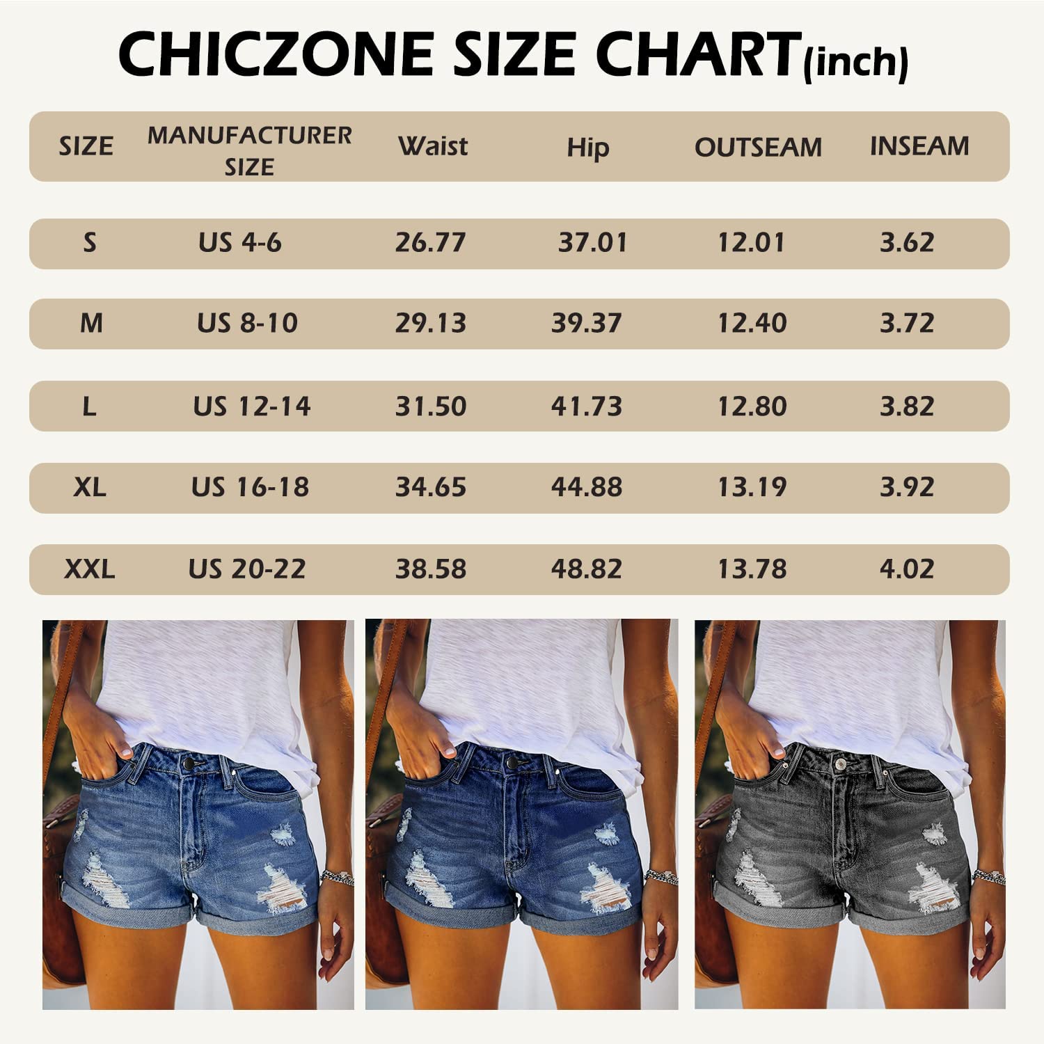 ✦Please Refer to the CHICZONE Size Chart before Ordering(NOT AMAZON SIZE). Anyother Questions, Please Contact Us Freely! Womens Shorts Denim Casual Summer, Jean Shorts for Women Ripped Stretchy, Denim Jeans Shorts Womens High Waisted,Cuffed Distressed Short Jean for Women.