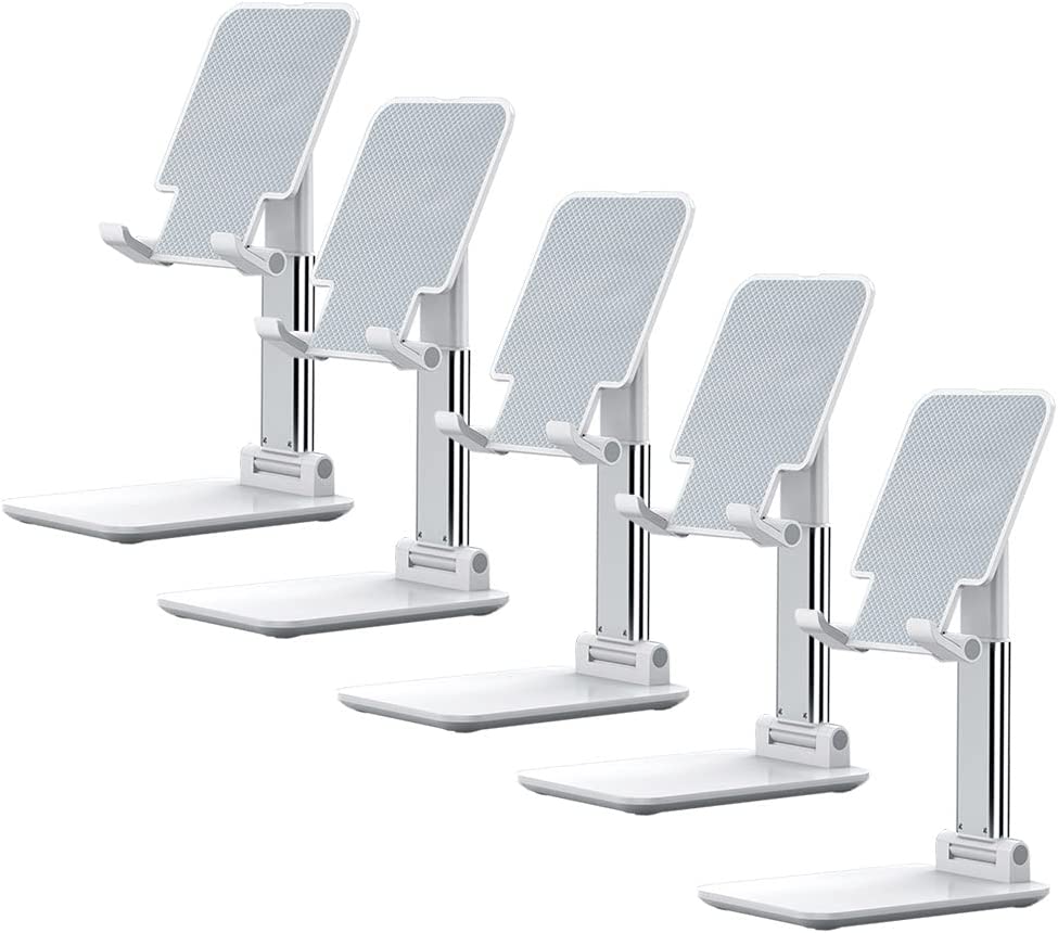 OGMAPLE Cell Phone Stand, Angle Height Adjustable Cell Phone Holder with Silicon Pad for Desk Fully Forldable Mobile Phone Holder Compatible with All Mobile Phones, MT-6, (White)