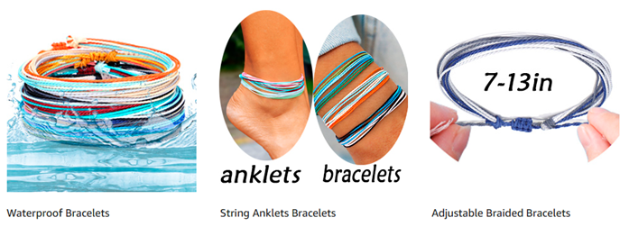 - The summer beach bracelets are made of waterproof wax rope, never fade and make your skins allergic, you can wear our VSCO ankle bracelets and enjoy the sun on the summer beach never worry about its fade and breakage.
