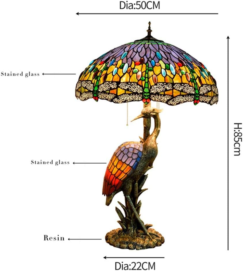 Handmade Stained Glass Table Lamp 18" Tiffany Style Large Table Lamp Dark Red Blue Dragonfly Desk Lamp Creative Antique Light Base for Living Room Study Bedroom Table Lamp (Color : Female)