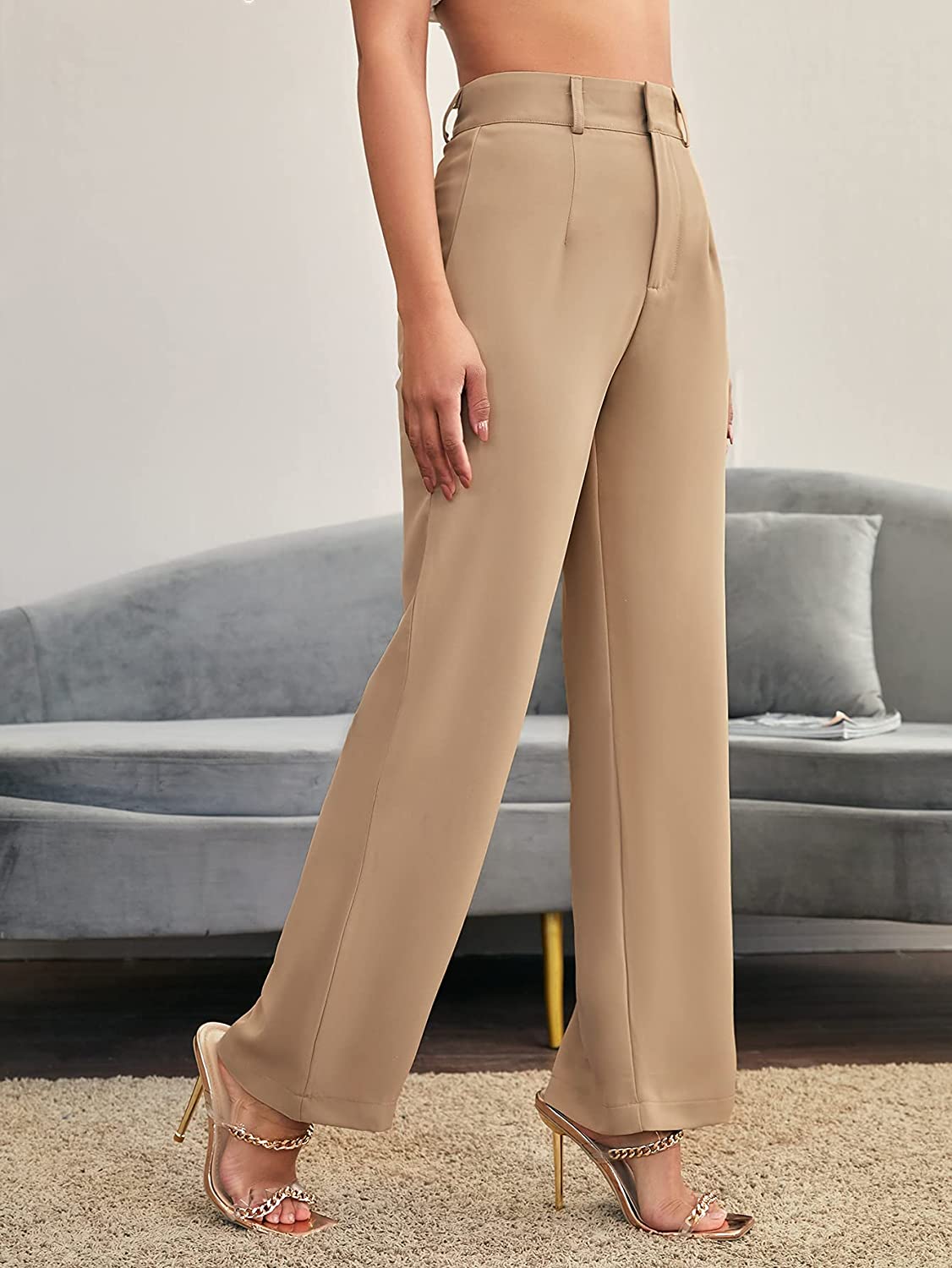 SweatyRocks Women's Elegant High Waist Solid Long Pants Office Trousers