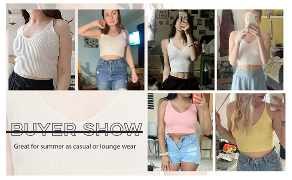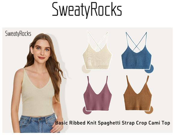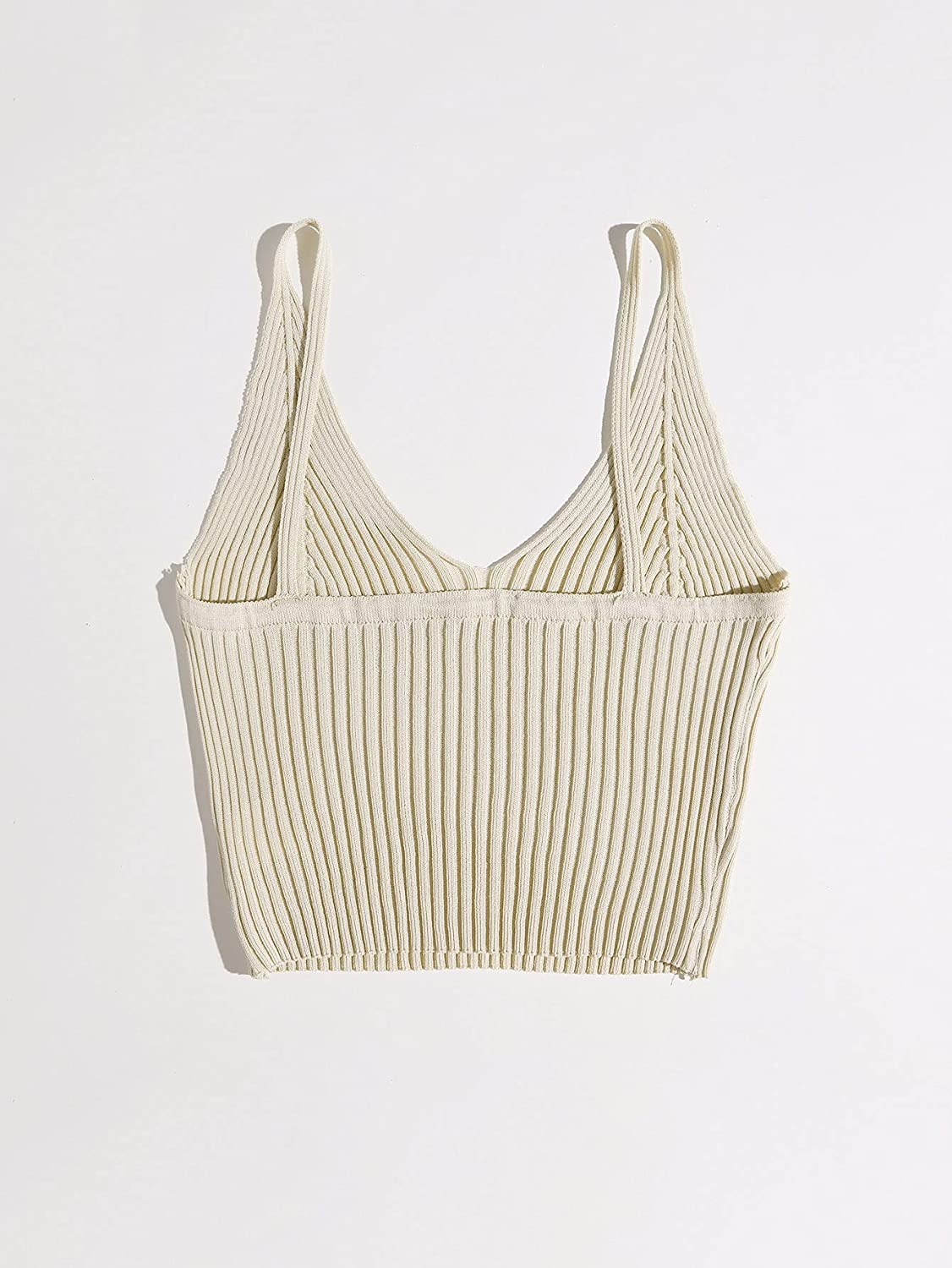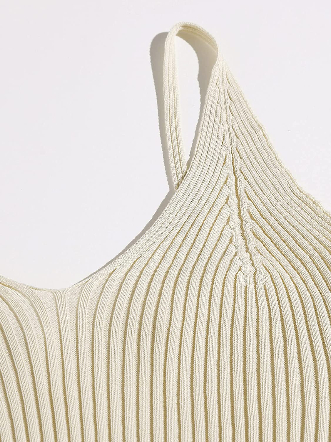 SweatyRocks Women's V Neck Crop Cami Top Ribbed Knit Spaghetti Strap Sleeveless Vest