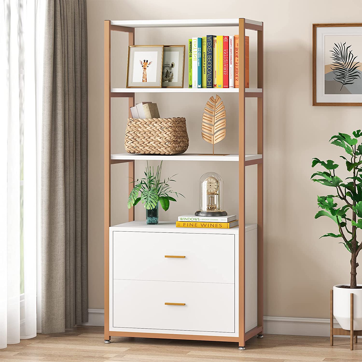 [ 2 Tier-Drawers Storage ] - [Important information: Please check the drawer size before buying. This is not a filing cabinet and can't accommodate A4, F4, letter size and legal sized suspension files.] Designed to meet diversifying storage demands, Tribesigns storage bookcase with 2 tier large drawers provides a private room to preserve your important documents and letters, favorite office supplies