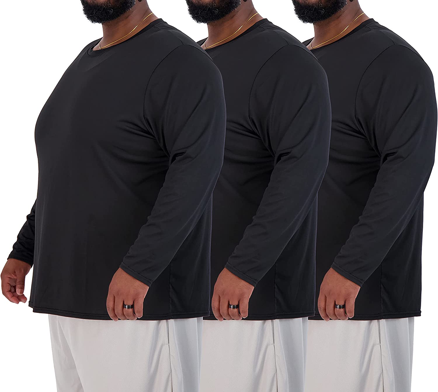 3 Pack: Men’s Big & Tall Tech Stretch Long-Sleeve & Short-Sleeve Dry-Fit T-Shirt