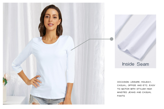 Basic 3/4 sleeve t-shirt with crew neck,thick material, Not see-through