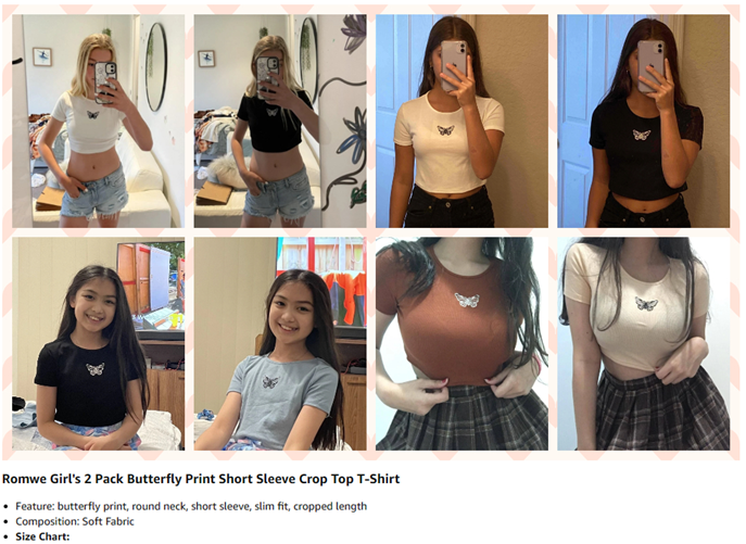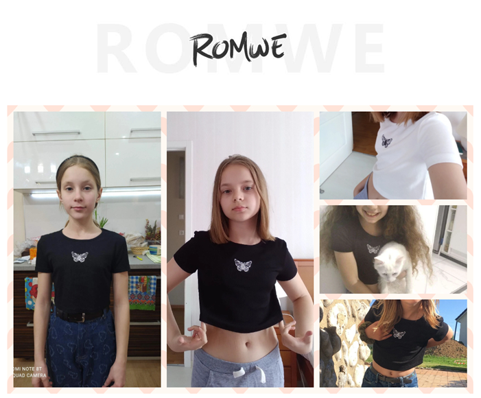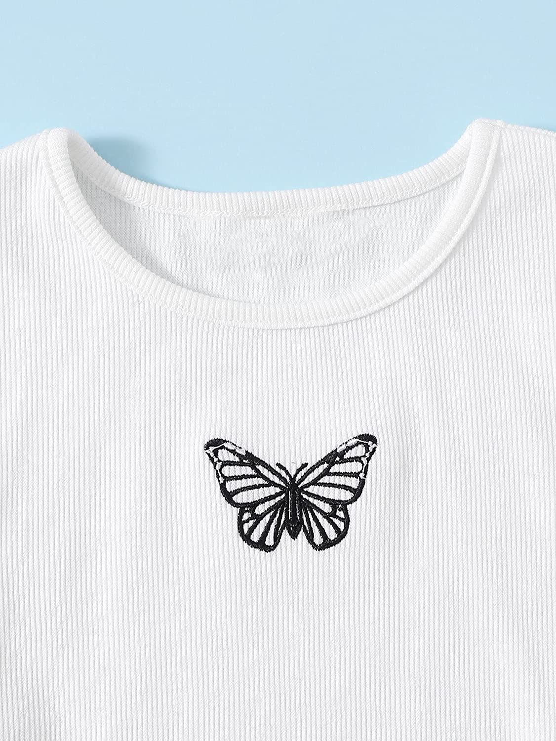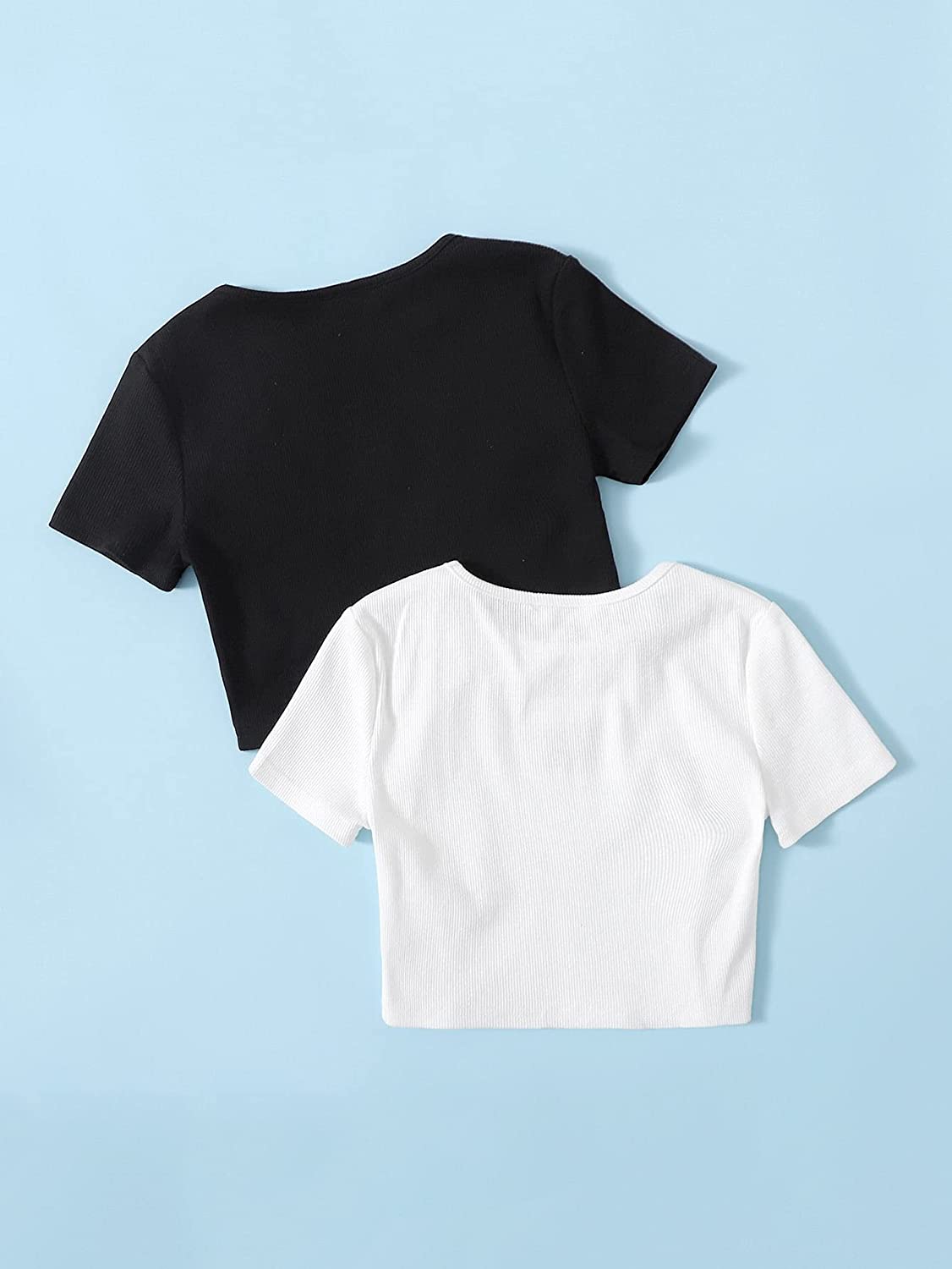 Romwe Girl's 2 Pack T Shirt Graphic Butterfly Print Short Sleeve Crop Tops