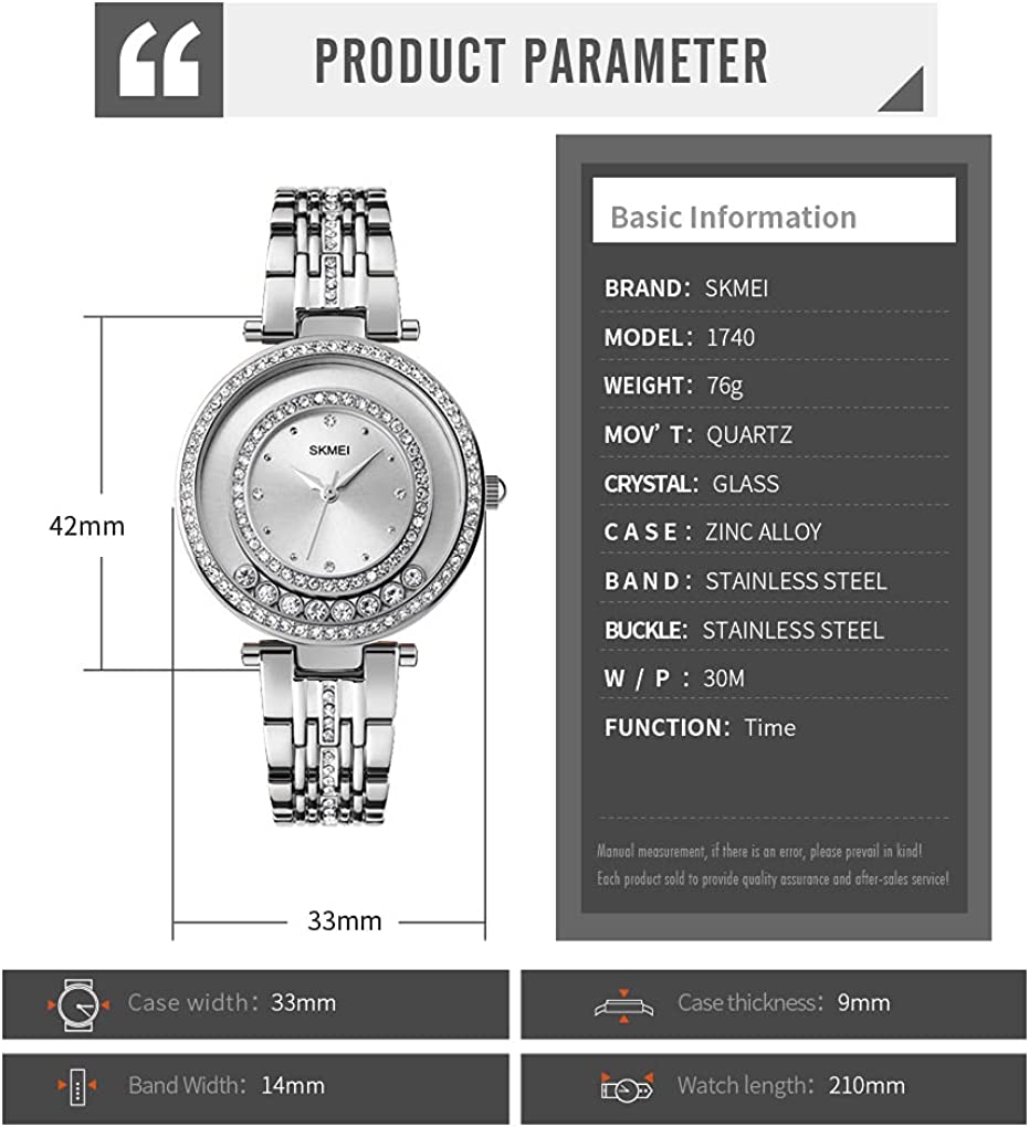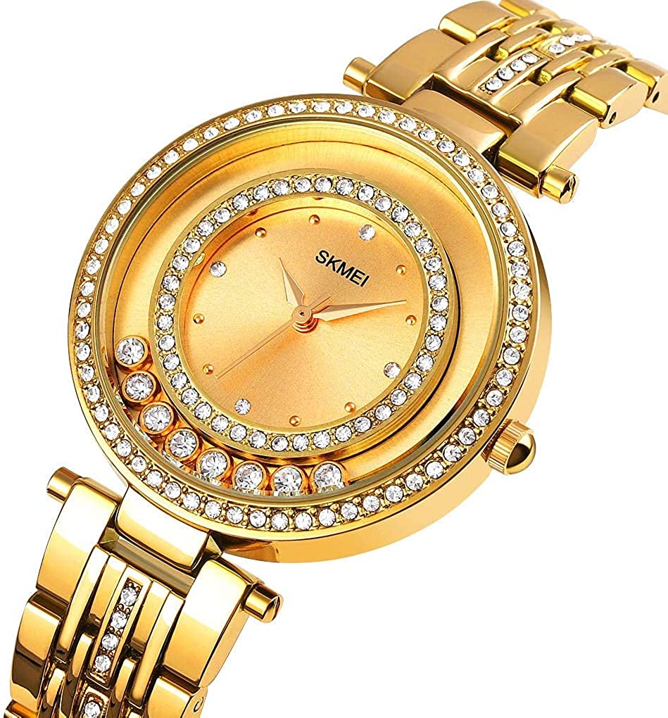 • ★ Dress watches for women ★: Moving bead design,shining austria rhinestone,12 hours display,Clear and easy to read. There are 3 Colors (Rose gold, Gold, Silver) With Quartz Analog Display,Water Resistant To 30m (100 Ft).