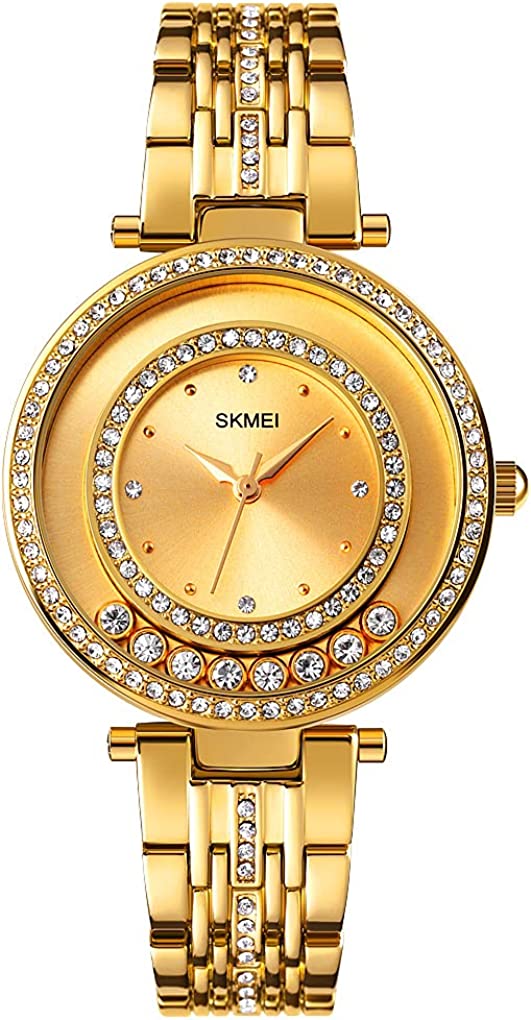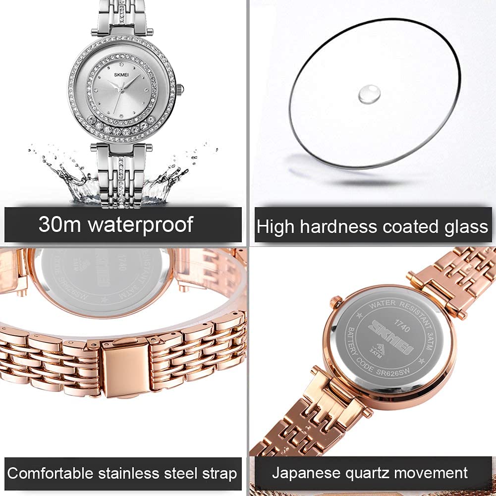 SKMEI Lady Watches for Women Female Bling Dress Fashion Luxury Diamond Business Casual Analog Quartz Waterproof Stainless Steel Wristwatches Gifts