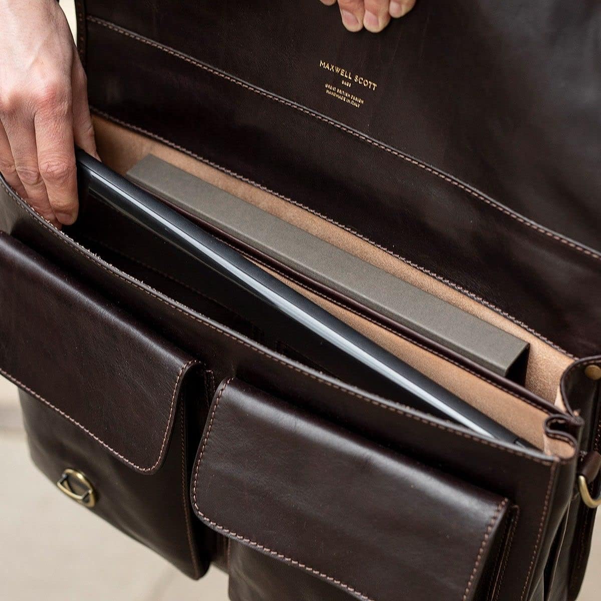 Maxwell Scott | Personalized Mens Luxury Leather 17” Laptop Briefcase Satchel | The Loreto Large | Travel Bag