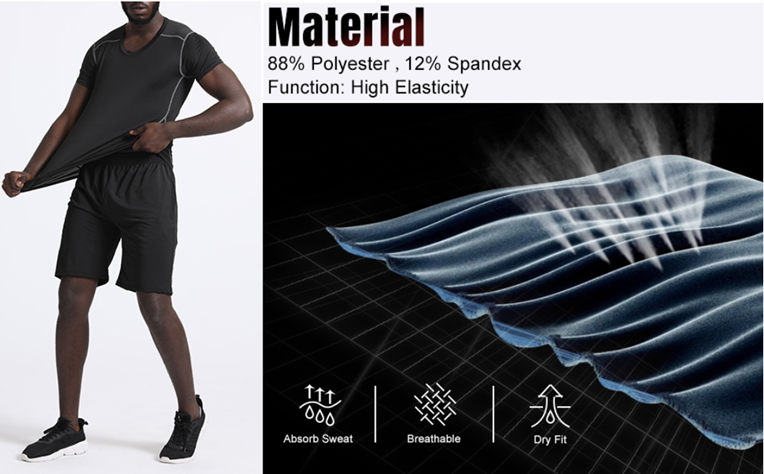 - ELASTIC AND COMFORTABLE FABRIC---92% polyester + 8% spandex breathable material, skin-friendly, slim-fit and tight-fitting, perfectly show your muscles and good figure. And protect your muscles during your muscle training. Work out the perfect figure. Quick-drying and quick-drying, they cool you down when in hot and warm you up when in cool.take away moisture from the skin, keep cool and dry during exercise, suitable for all seasons (indoor sports in winter).