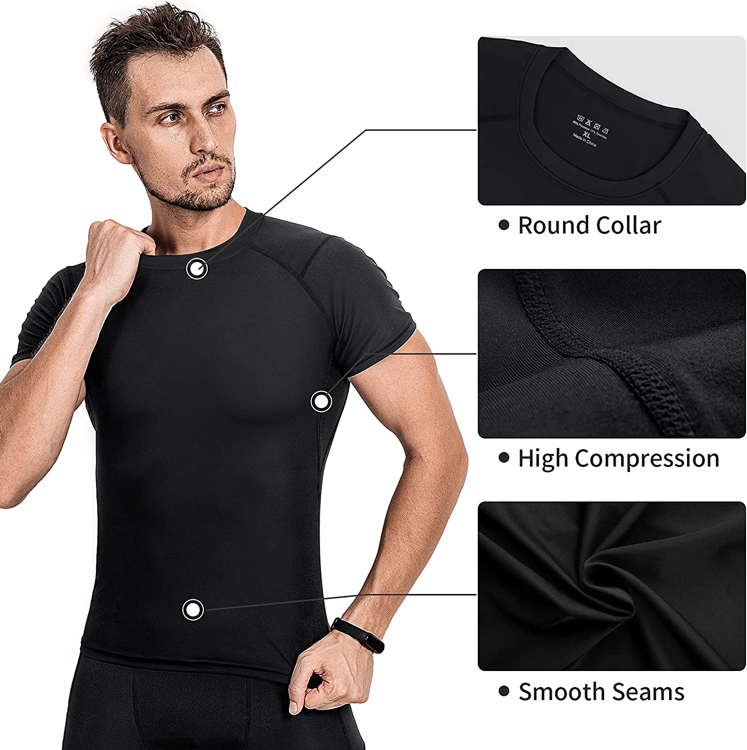 【Quick Drying Fabric】 This superior quality breathable compression shirts has excellent moisture wicking properties, keeping your body cool and dry quickly, staying away from dampness and coldness, and helping to regulate body temperature during exercise.
