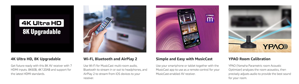 Enjoy a complete home theater with the YHT-5960U. This 5.1-channel surround sound system will transform how you listen and watch at home with a powerful subwoofer and complete set of surround speakers. The YHT-5960U home-theater-in-a-box includes an AV receiver with the latest in video processing, Dolby TrueHD, DTS-HD Master Audio, wireless streaming and more.