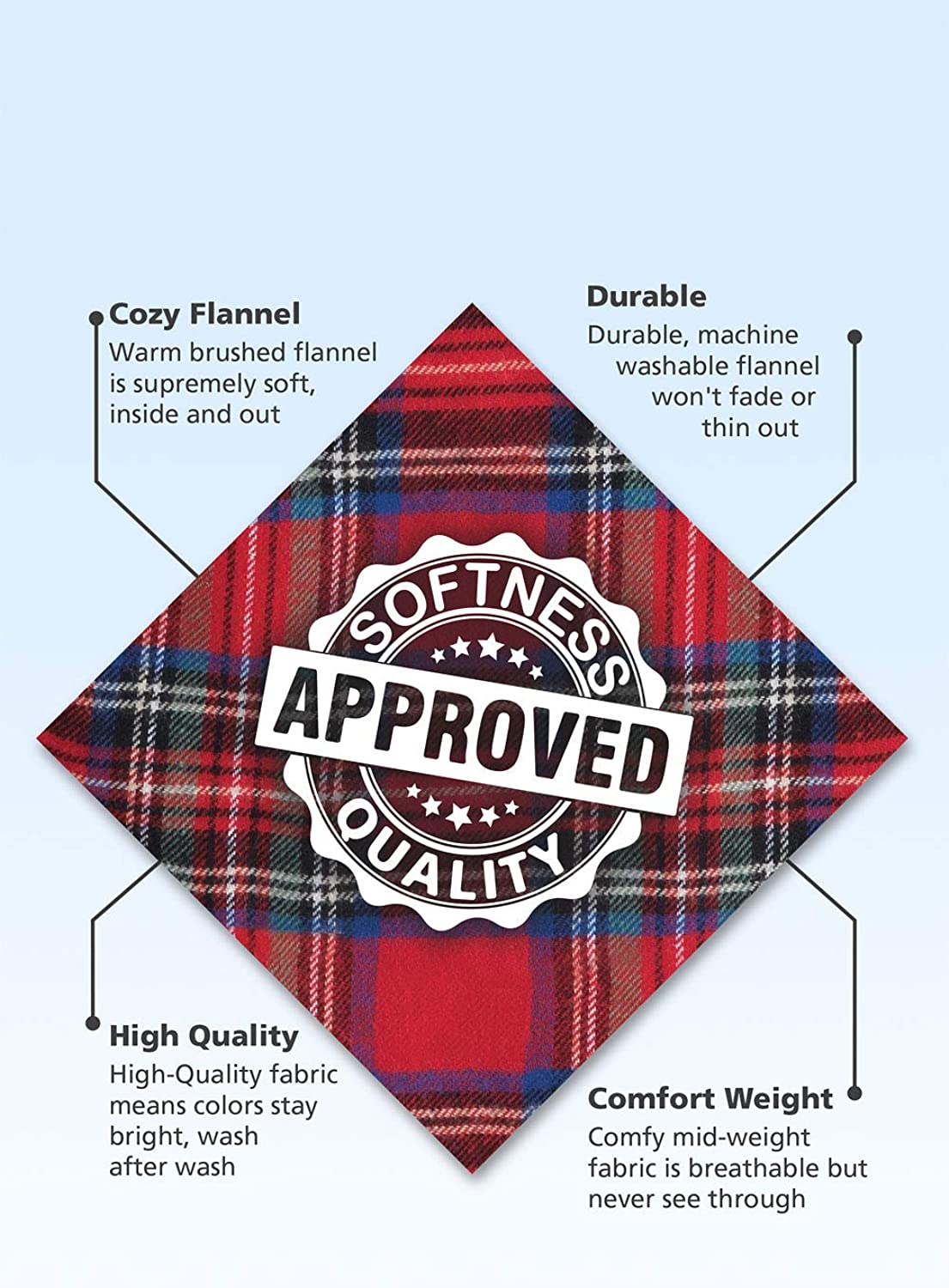 Long-lasting - Made to last with 100 percent brushed cotton flannel that has been yarn-dyed to ensure that the material maintains its color and vibrancy long-term