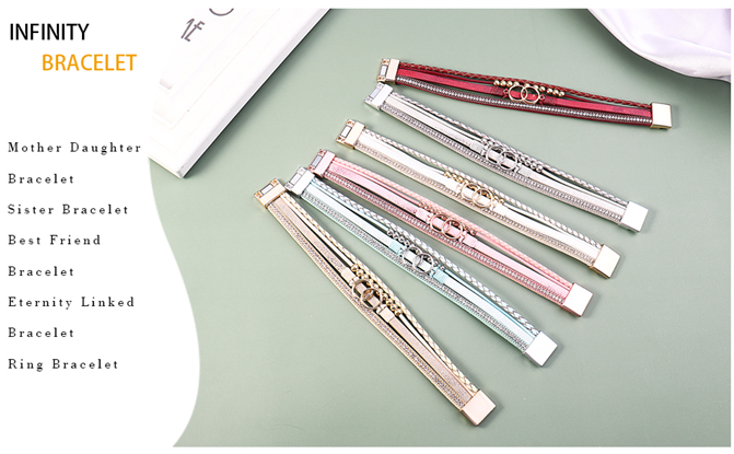 Layered Bracelets: The rose gold infinity circles, rose gold beads and shinny rhinestone are telling “The love between us is forever”.